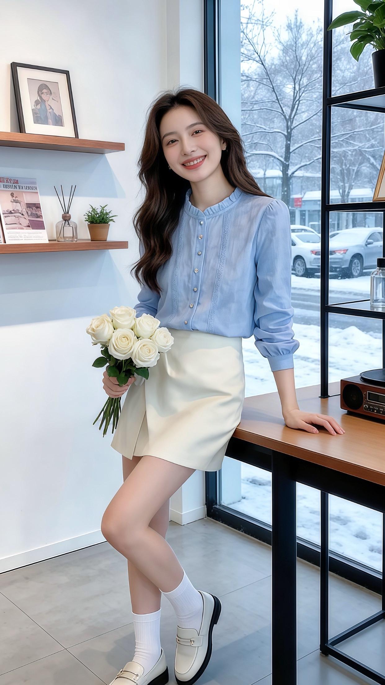 这位女子的衣着打扮无可挑剔,容颜气质更是完美无瑕,您能挑出哪里不好吗?