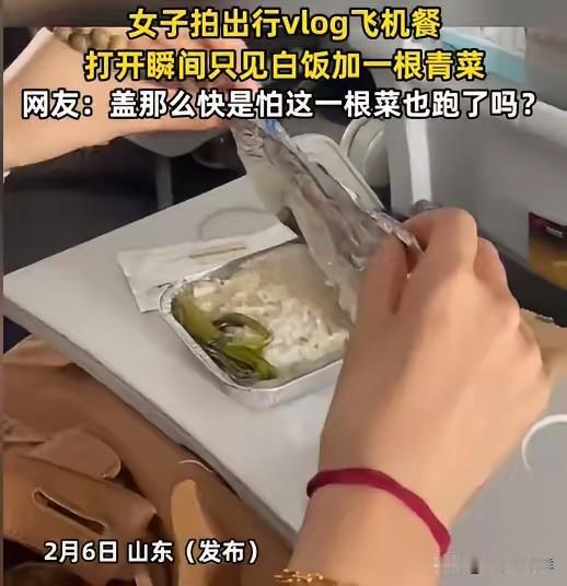 “太离谱了!”山东一女子飞机上打开餐盒时,却惊讶发现一碗白饭只配“独苗”青菜,吓得女子连忙盖上了盖子。网友:“盖这么快,是怕这根菜也长腿跑了吗?” 这事发生在2月6号,山东一位28岁的白领李女士,坐短途航班出差。 她本来还挺期待飞机餐,结果一掀锡纸,整个人都懵了。 铝箔盒里白花花的米饭占了九成,旁边孤零零躺着一根蔫头耷脑的青菜,连个油星子都没有。 她赶紧把盖子盖回去,生怕这根菜也被气流吹跑,还拍了vlog发网上。 视频一出来,评论区直接炸了。 有人笑她,“大姐你这手速,是怕这根菜被气流吹走吗?” 还有人说,“这哪是飞机餐,这是减脂餐天花板吧?” 更有人翻出自己的经历,说上次坐同公司航班,鸡肉饭里的肉比指甲盖还小。 我有个朋友是资深飞友,他说现在坐飞机,已经不抱任何期待了。 “能有瓶水喝就不错了,要是能吃到热乎的,那简直是中奖。” 他还说,有次坐某廉航,连水都要花钱买,一杯可乐三十块,比机场便利店还贵。 也有人帮航空公司说话,说现在油价涨、成本高,压缩餐食也是没办法。 但更多人不买账,“成本高就可以糊弄乘客?那机票钱也没见便宜啊。” 就在大家吵得不可开交的时候,涉事航空公司出来回应了。 他们说,这是短途航班的“轻食套餐”,主要是为了满足部分乘客的减脂需求。 还说如果乘客不满意,可以申请更换餐食,或者申请退款。 这话一出,网友更气了。 “减脂需求?我是来坐飞机的,不是来减肥的。” “申请更换?飞机都飞一半了,换个屁啊。” 我特意去查了下,现在不少航司为了压缩成本,把餐食标准一降再降。 短途航班干脆取消热食,只提供点心包;就算有热食,也多是预制菜,成本压到最低。 有业内人士透露,一份经济舱餐食的成本也就十几块钱,还不如一杯奶茶贵。 但问题是,乘客花了钱买票,不是来当“减脂博主”的。 你可以简化餐食,但不能把“简化”变成“敷衍”。 一根青菜配白饭,这已经不是“朴素”,而是对乘客基本尊重的缺失。 更讽刺的是,有些航司在宣传页上把餐食拍得花里胡哨,什么“精致轻食”“地域特色”,结果乘客拿到手,才发现是“买家秀”和“卖家秀”的区别。 这种落差感,比没吃到肉还让人窝火。 现在大家都在说“消费降级”,但航司的做法,更像是“服务降级”。 把成本省下来,却丢了口碑,这笔账怎么算都不划算。 其实乘客要的真不多。 不是山珍海味,只是一份能吃饱、能吃好的热饭。 你哪怕给个卤蛋、一块小肉,也比一根青菜强。 毕竟,飞机餐不只是一顿饭,更是航司服务态度的缩影。 各位读者你们怎么看?欢迎在评论区讨论。 信息来源: 新晚报|《打开航餐后发现一盒米饭仅配了一根青菜。女子:我没说你别搞我。随后还更新了一个视频的后续,她打开了另一份航餐,里面是较为正常的面食,并配文“我爱航餐”。》