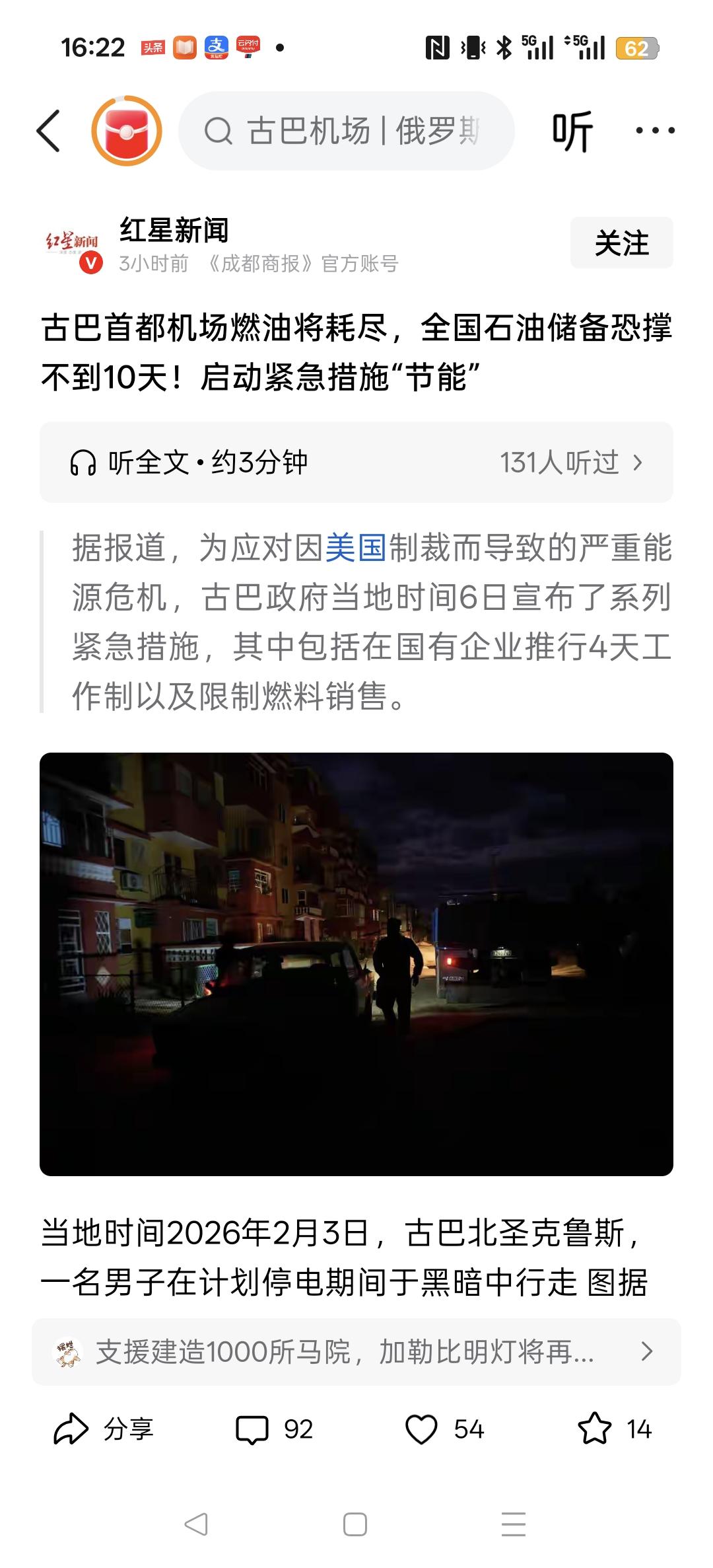 看古巴被美国制裁,能源接近耗尽,可见发展多元化能源是多么的重要! 在古巴这个国家,太依赖进口石油这些能源了。现在已经被美国经济封锁打压,自己国家的可使用能源,已接近耗尽见底了。 国有企业实行4天工作制,学生上课也要缩减时间了,还有很多人面临失业,这一系列的问题发生,都是原至于能源资源的不足才产生的。 可见单一的能源是靠不住的,必须得多元化发展才行。在中国这里,老百姓已经使用了电能这些清洁能源了,很多东西都在摆脱了石油的依赖性,我觉得这点是做得比较好的。 即使他国封锁我经济,也制裁不到这单一的能源,我行我素就是这么厉害。