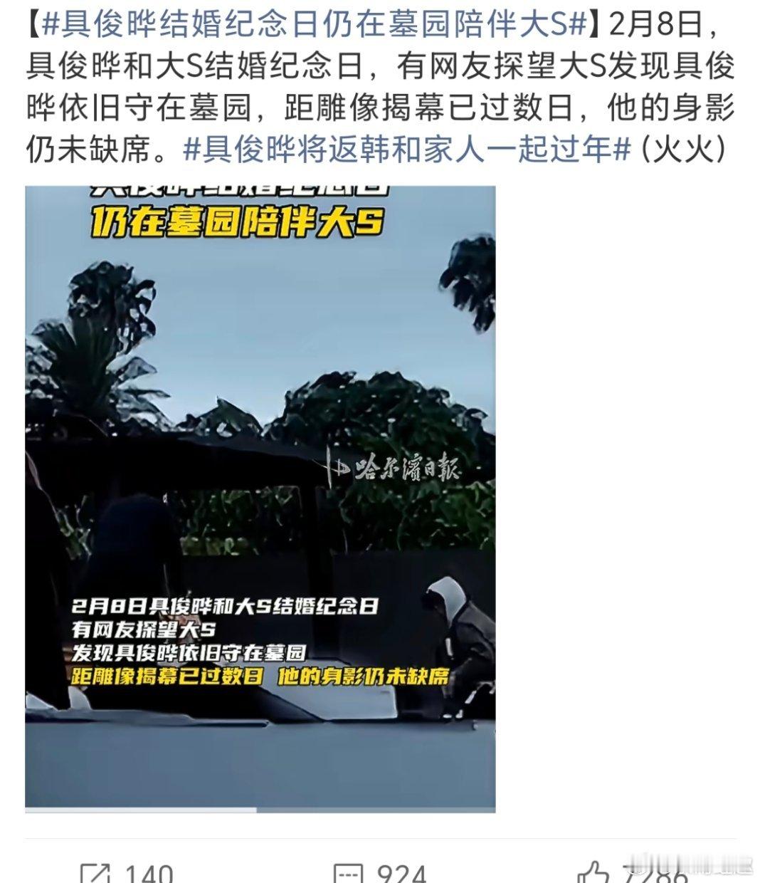 具俊晔结婚纪念日仍在墓园陪伴大S这是演上瘾了嘛!