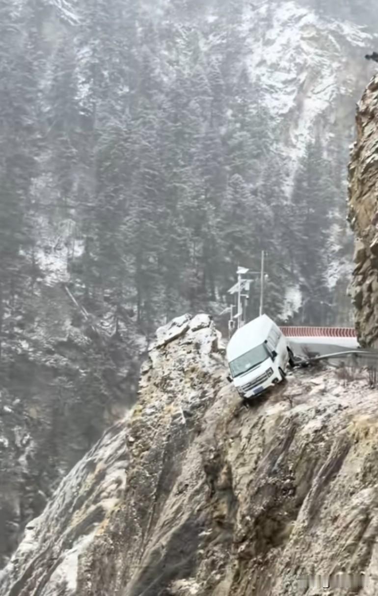 波密往然乌湖方向下雪路滑,目测九座车车内人员未知,下车都不敢有大动作 太危险了,但凡偏一点点后果不堪设想,开车注意安全。祖宗打通了所有关系拦下了,司机的祖宗在地下把关系都找完了,网贷都撸爆了,才请了这么个石头给把车卡住了。副驾打开车门就是万丈深渊,副驾的人是从主驾出来的!太悬了! 这个角度不是专业的还真的不敢乱动,拉上去了更好,如果操作不当有可能把事故车和自己车一起搞掉下去。