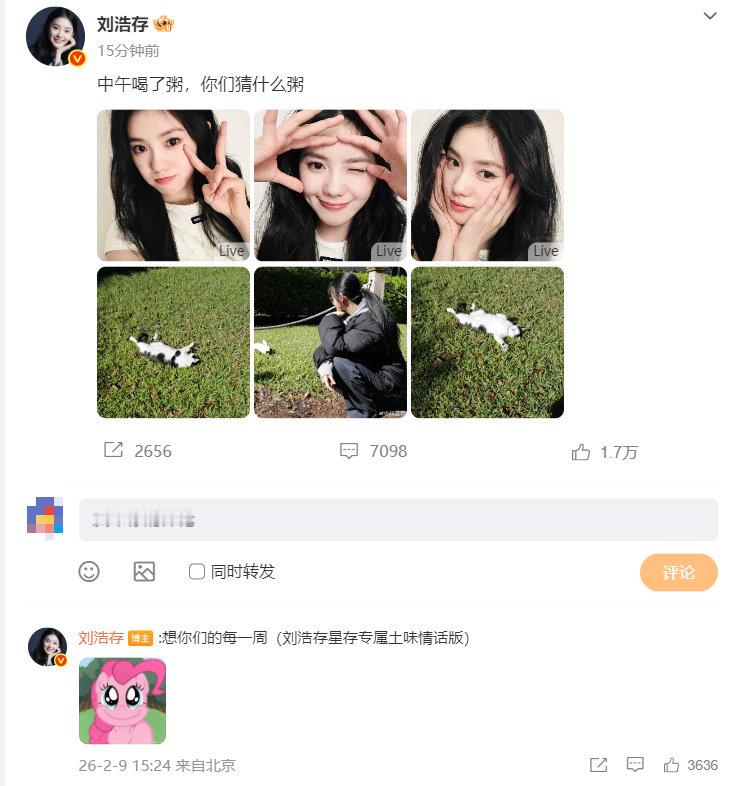 刘浩存说中午喝了粥 刘浩存对粉丝说土味情话 刘浩存说中午喝了粥,让大家猜自己喝的什么粥,然后又在评论区揭晓:想你们的每一周 好好好,是对粉丝说土味情话的存宝呀,怼脸拍真的太可爱了,一整个被撩到啦~