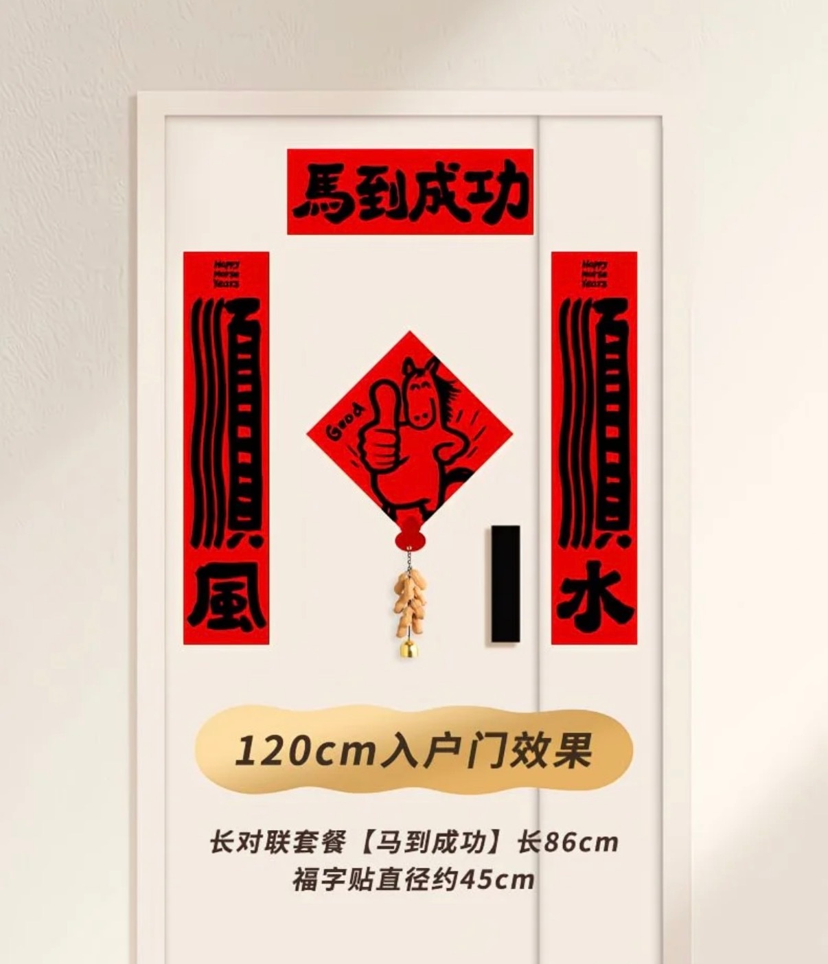 买了一副对联。马到成功“顺风,顺水”,挺有意思的吧?