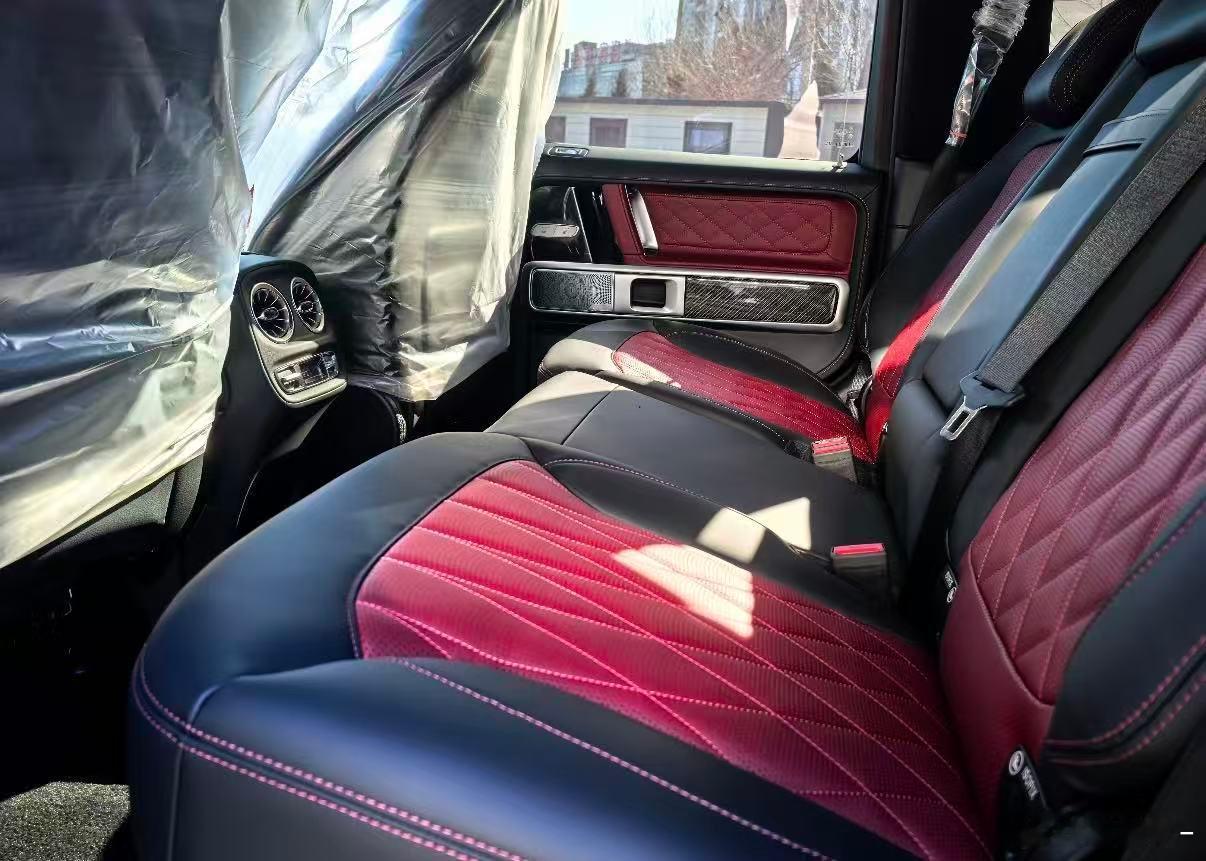中规奔驰G63 外观选了MANUFAKTUR 哑光黑色/纯黑的双拼色内饰选的孟加拉红