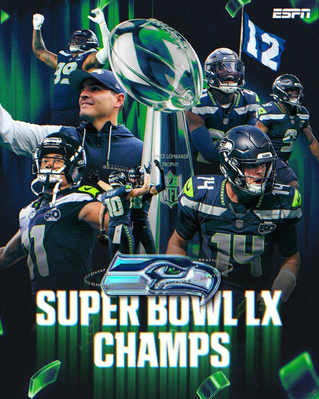 NFLNFL 第60届超级碗西雅图海鹰29比13击败新新英格兰爱国者,夺得队史第二个冠军,完成对爱国者的复仇。海鹰在季后赛落后时间只有1分35秒,是1970年合并以来,超级碗冠军落后第五少时间。上半场爱国者五次弃踢,海鹰进攻也没达阵,但是有三次射门9分入账。中场秀结束下半场回来,第三节爱国者三次弃踢+掉球,进攻依旧很难开展,而海鹰继续命中射门,完成两位数的领先。末节海鹰达诺德连线巴纳拿下达阵,比分已是19-0,随后爱国者虽有59秒便达阵,但面对如此海鹰强悍的防守组送出抄截并被回攻达阵,比赛就此无悬念。
