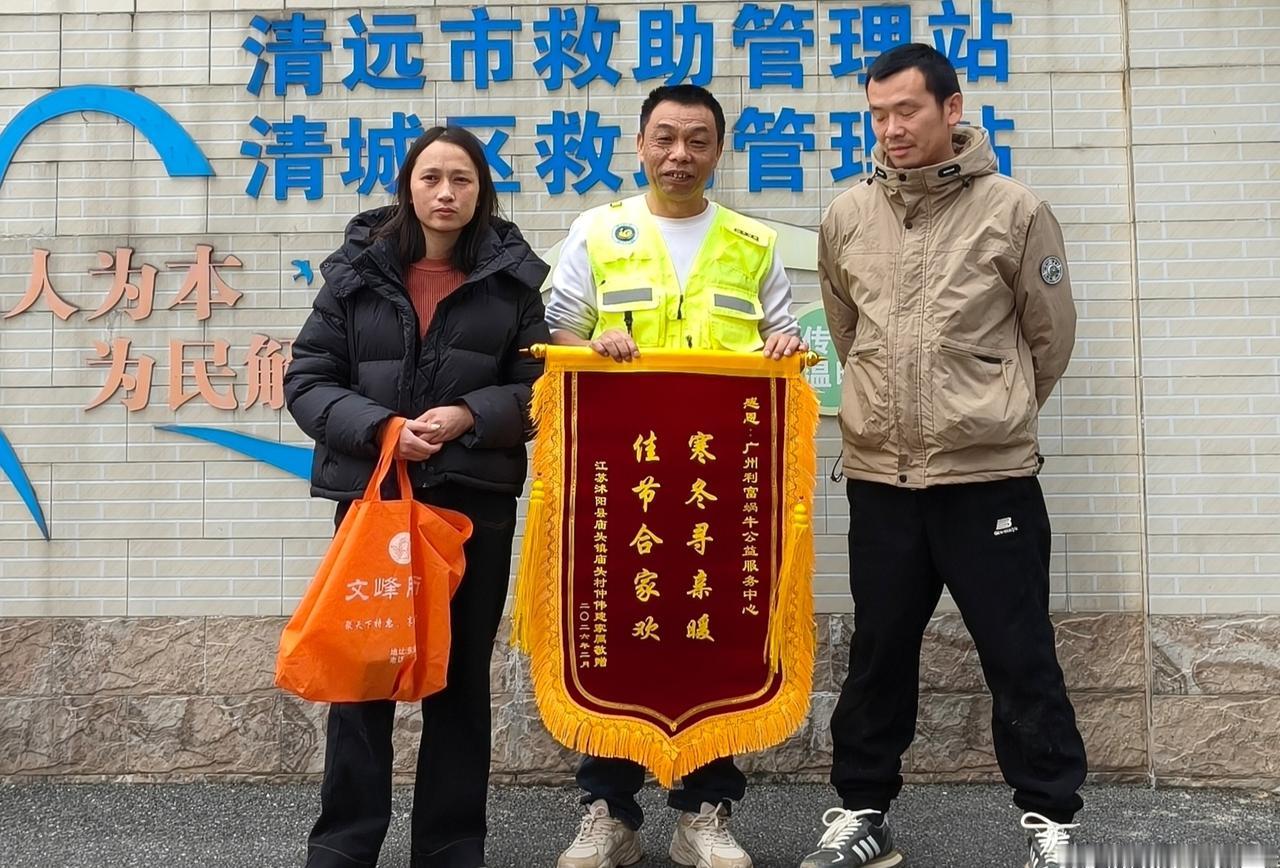 寒夜寻踪,千里归途:失联两年男子终迎团圆年 仲伟建,男,40岁,江苏省宿迁市沭阳县庙头镇庙头居委六组人,于2024年6月因家庭琐事与亲人争执后负气离家,自此音信全无。两年来,家人报警寻人、四处打听,始终杳无音讯。年迈双亲日夜垂泪,妻子独撑家庭重担,年幼子女常问“爸爸在哪”,团圆,成了这个家最深的执念。 当得知仲伟建在清远平安无恙的消息时,家属悲喜交集,电话那头声音颤抖:“是我们家人!2024年6月走的,报警找遍了都没线索……麻烦你们一定照看好,我们马上出发,立刻去接他回家!” 为抢在除夕前团聚,2月7日当天,仲伟建妻子携两位堂兄弟整装出发,手捧“寒冬寻亲暖,佳节合家欢”锦旗,从江苏宿迁驱车启程,昼夜不息连夜出发。 这是一次速度与温度并存的寻亲奇迹,更是清远民政救助体系与社会力量协同发力的生动写照。从发现、介入、核实到对接,仅用72小时,便让一个破碎的家庭重见曙光。蜗牛公益将持续推进“大爱寻亲、温暖回家”专项行动,以微光聚星河,用爱心铺归途,助力更多流浪者回家过年,让寒冬不寒,让佳节有情。 有些路,走了很久,但终究会通向家门;有些人,失散多年,但爱从未走远。这一次,他回家了——刚好赶在春节前。