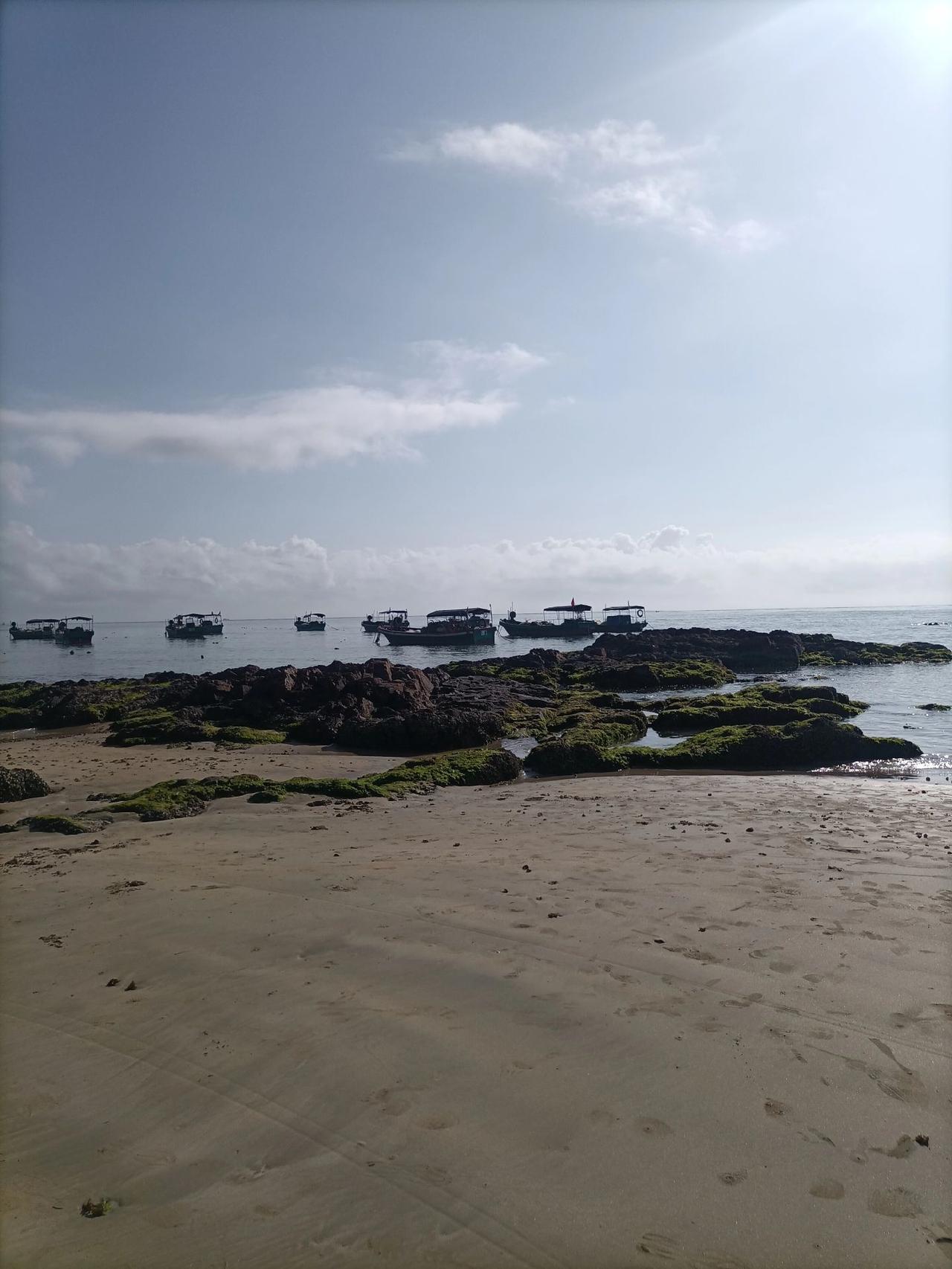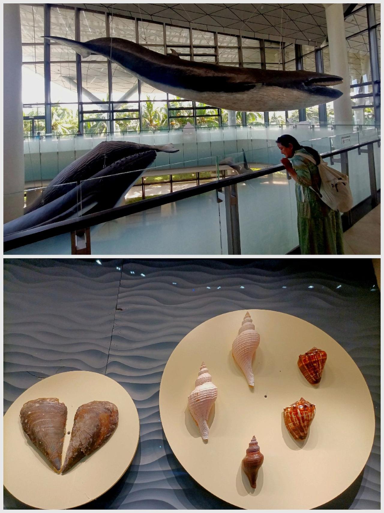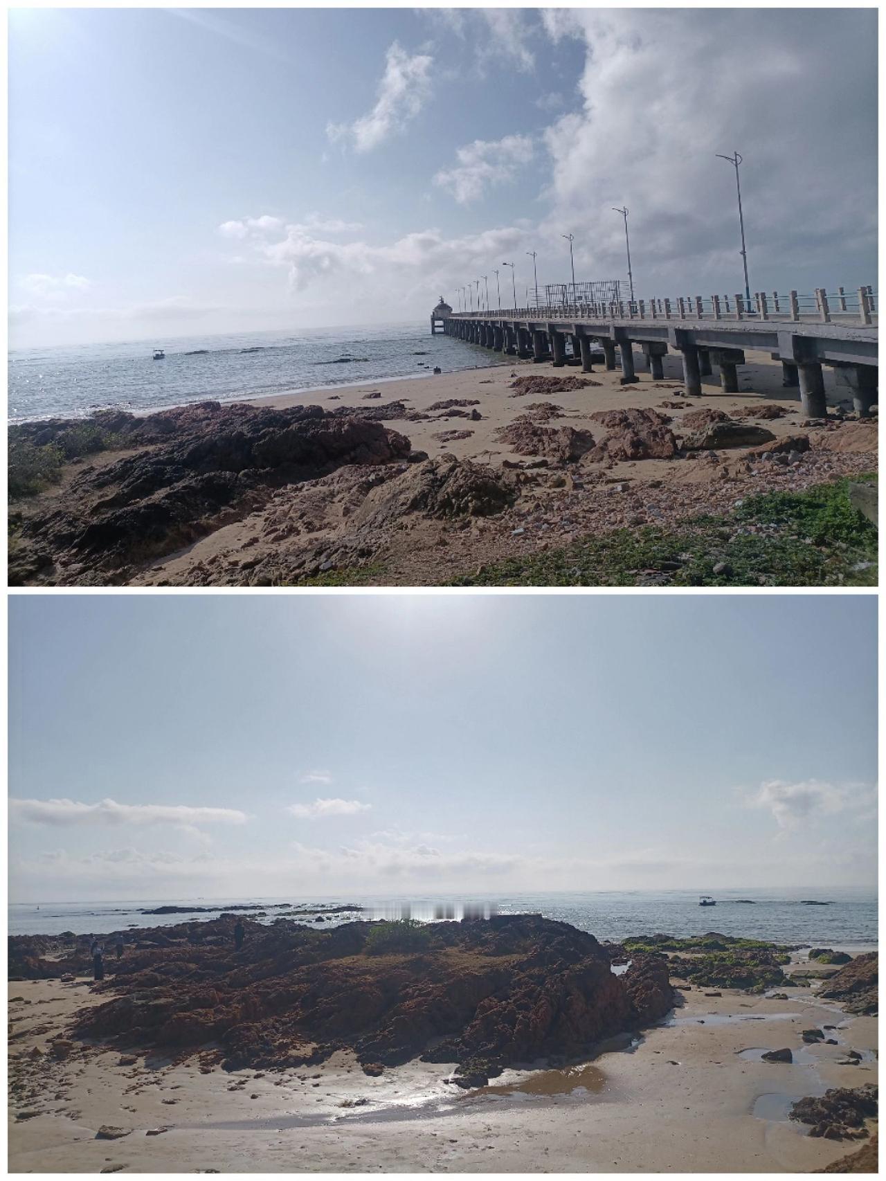 中国海南南海博物馆位于琼海(图1),是我见过的博物馆中最好的一个,展品丰富、生动、立体、详实。海底华光礁1号复原船(图1中),宋元时期远洋福船,原船长22.14米,宽8.1米,深3.51米;约1500年前的柬埔寨石象,栩栩如生(图1下);展馆之间的海景美如画(图2),大型鲸类标本和贝壳珍品多的眼花缭乱(图3)。 琼海红石滩,名不虚传,沙滩上满眼一堆堆的红礁石(图4-11),别有风情。伸向大海的码头(图5上.图6-8)和远方点点的渔船(图5下.图9),组成一帧一帧梦幻般的画卷;原始的海湾和远方的椰树森林(图10-11)美丽不可方物。 博物馆 海边 海滩景色美如画