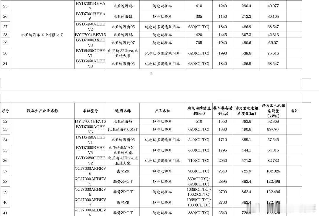 其余车型覆盖全品类:海鸥、海豚等微型/小型车主打305-510km短途代步;海豹、宋系列等中型/中大型车续航620-710km,兼顾家用与性能,形成全价位、全场景产品矩阵。大v聊车比亚迪
