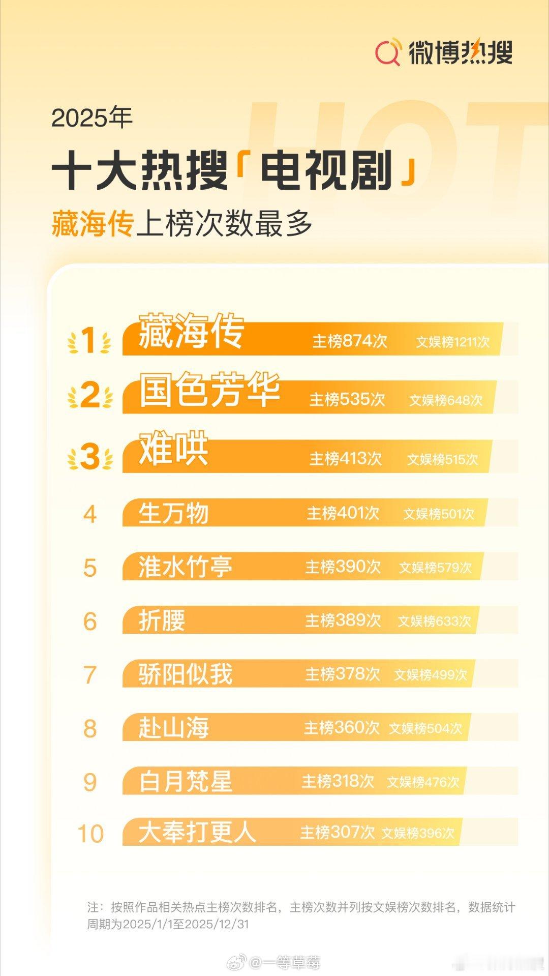 2025年十大热搜「电视剧」藏海传国色芳华难哄生万物淮水竹亭折腰骄阳似我赴山海白月梵星大奉打更人