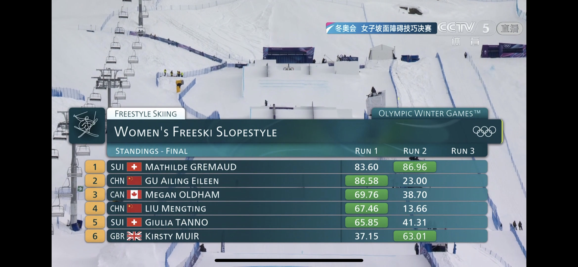 谷爱凌决赛谷爱凌坡面障碍技巧决赛