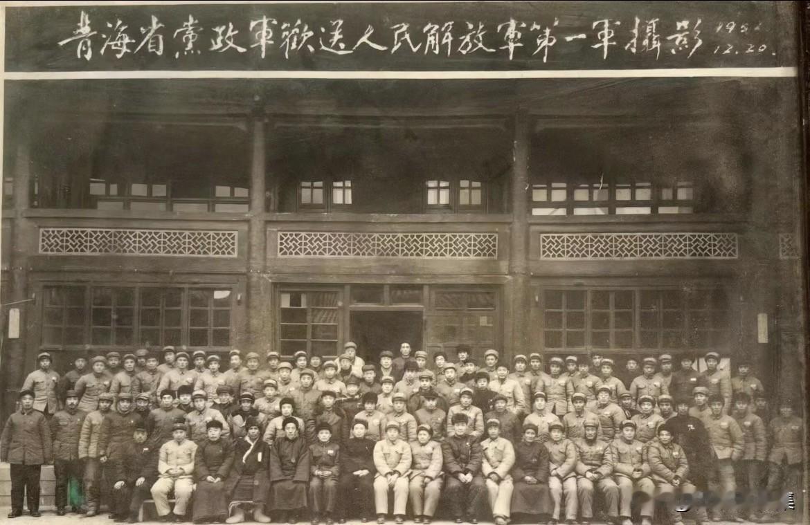 1950年12月,第一军即将挥师东进、奔赴抗美援朝战场前的历史瞬间。当时部队刚刚完成与第三军的合并整编,军长黄新廷(照片中前排中央)率部在青海省党政军各界人士的欢送下,踏上了保家卫国的征途。据战史记载,第一军在朝鲜战场共毙伤俘敌12069人,缴获大量武器装备,为抗美援朝战争的胜利立下了汗马功劳。1958年10月,第一军凯旋回国,驻防河南开封。军长黄新廷回国后进入南京军事学院深造,1955年被授予中将军衔。