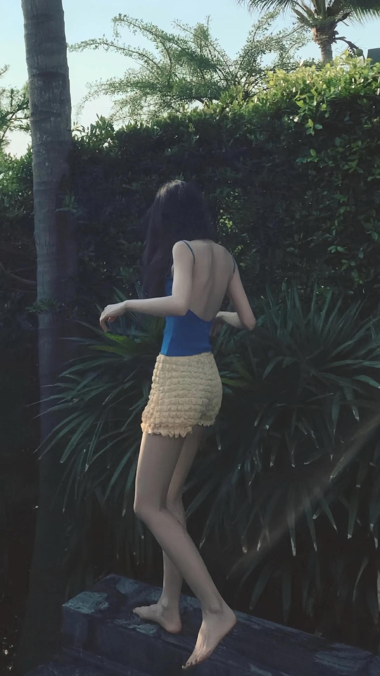 鞠婧祎的纸片人身材,整个人薄得真的就一片。摄影师厉害的,硬是把一米五的人拍成一米八。