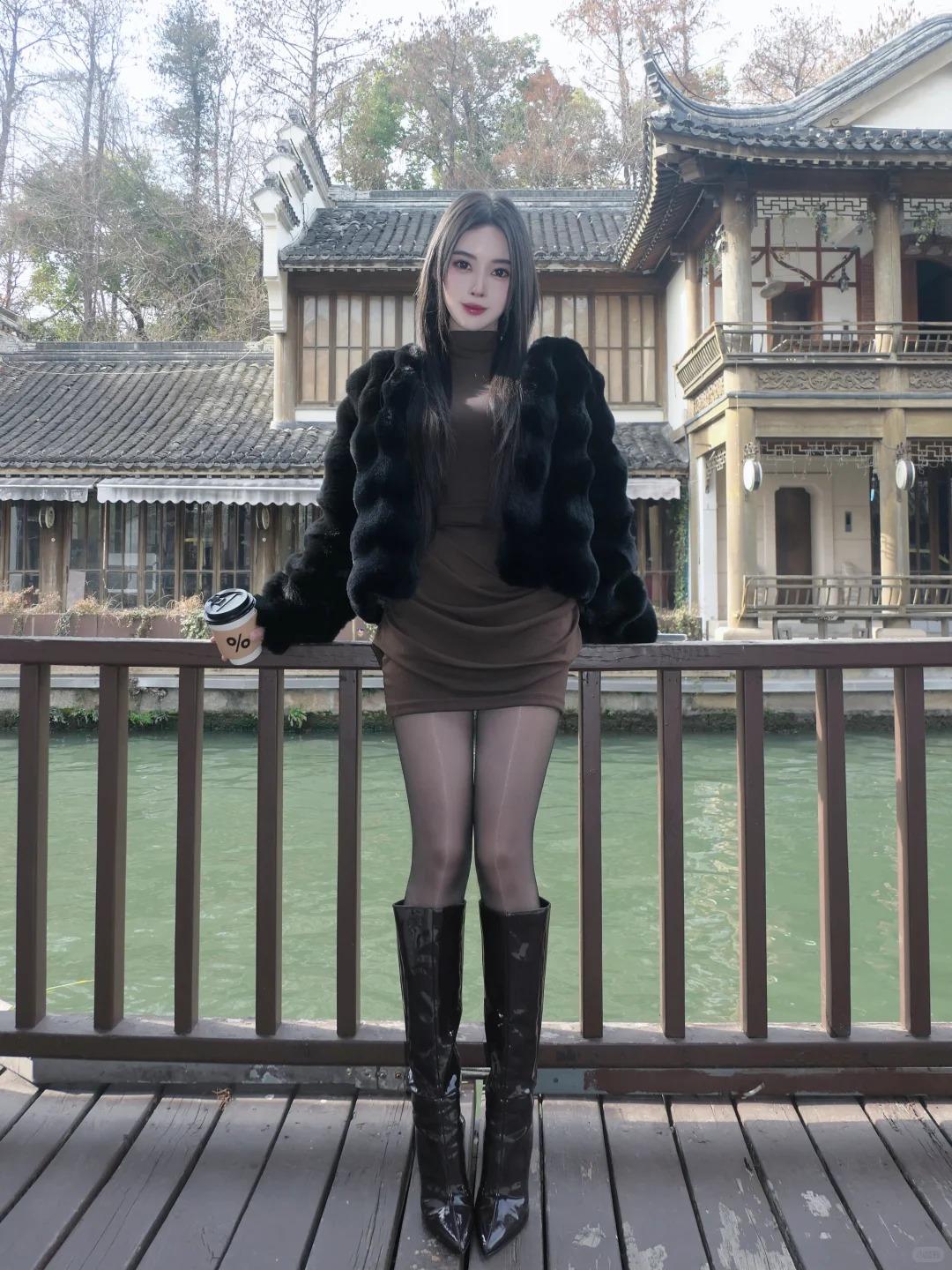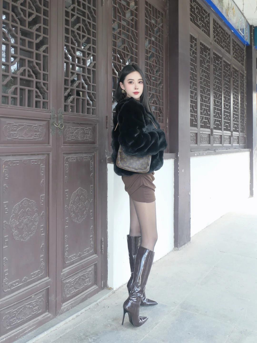 记录我的2026女友这套搭配氛围感直接拉满,甜酷又显贵气。黑色皮草柔软蓬松,短款版型利落不臃肿,自带温柔气场,绒毛质感细腻,衬得肌肤愈发白皙透亮。棕色修身内搭简约大气,贴合身形勾勒柔美曲线,暖调棕色中和了皮草的冷感,温柔又衬气质。极光黑丝是点睛之笔,细腻微光自带高级感,不浮夸不艳俗,巧妙衔接皮草与长靴,隐约显露的肌肤增添灵动韵味。棕色长靴与内搭同色系呼应,膝下版型拉伸腿部线条,皮质顺滑有光泽,整体搭配色彩协调、层次分明,将温柔与酷飒完美融合,每一处细节都尽显精致娇俏,越看越有味道。美女人像群女友穿搭黑色
