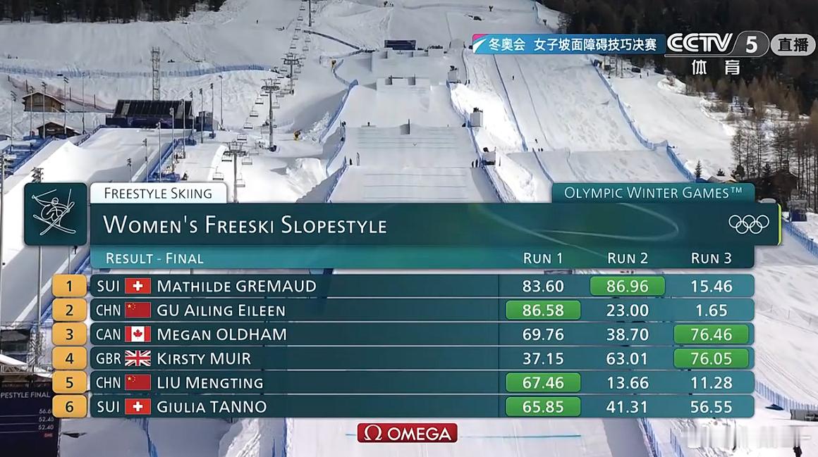 银牌也很棒!!!好久没有这样紧张看比赛了~刘梦婷 第五! 前5有2位中国选手!!!谷爱凌坡障银牌冬奥会谷爱凌追平自由式滑雪奖牌纪录