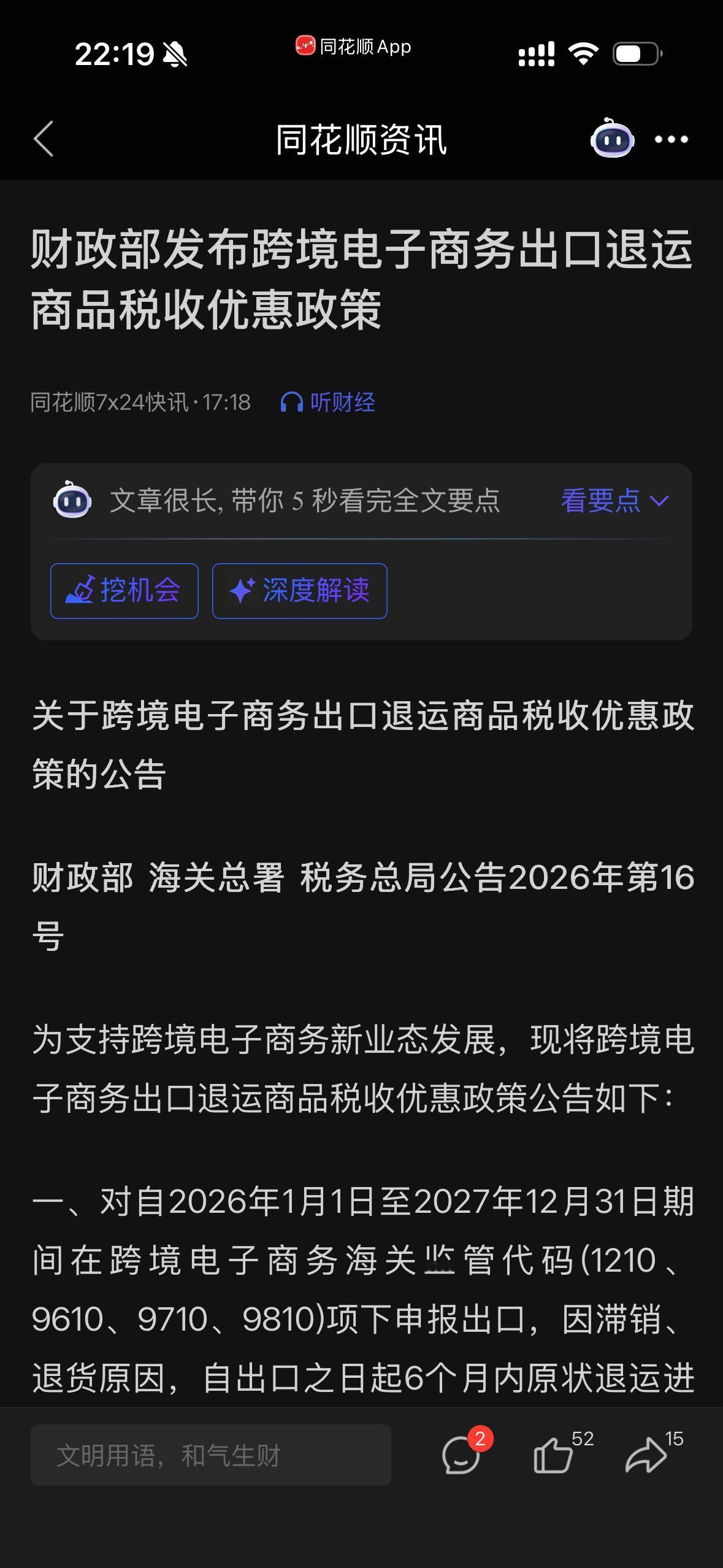 📦跨境电商出口退运税收优惠政策利好股票分析 这项政策对跨境电商全产业链形成