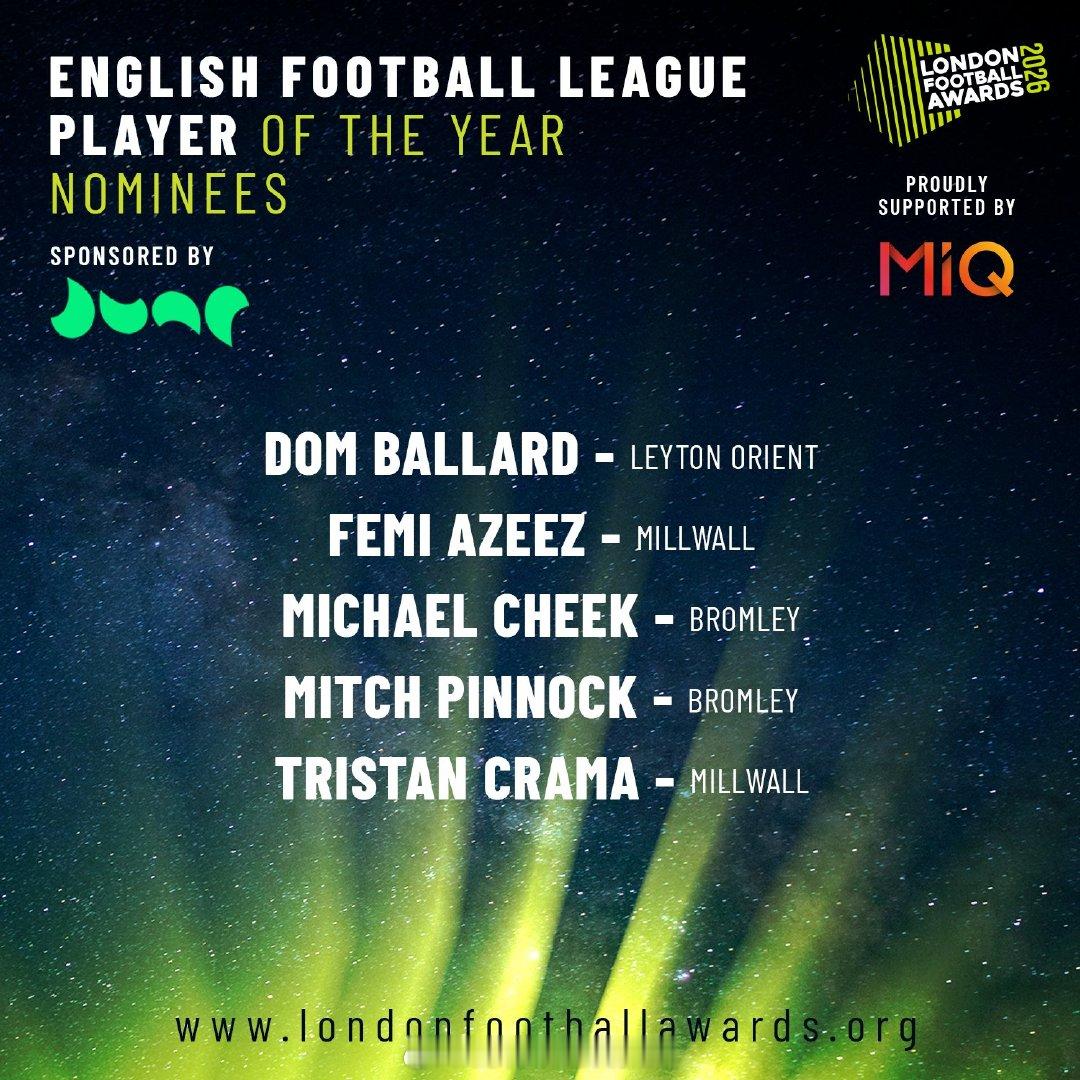 年度最佳年轻球员提名名单:亚当·沃顿(水晶宫)、埃斯特旺(切尔西)、卡约德(布伦特福德)、乔希·金(富勒姆)、奥利弗·斯卡尔斯(西汉姆)