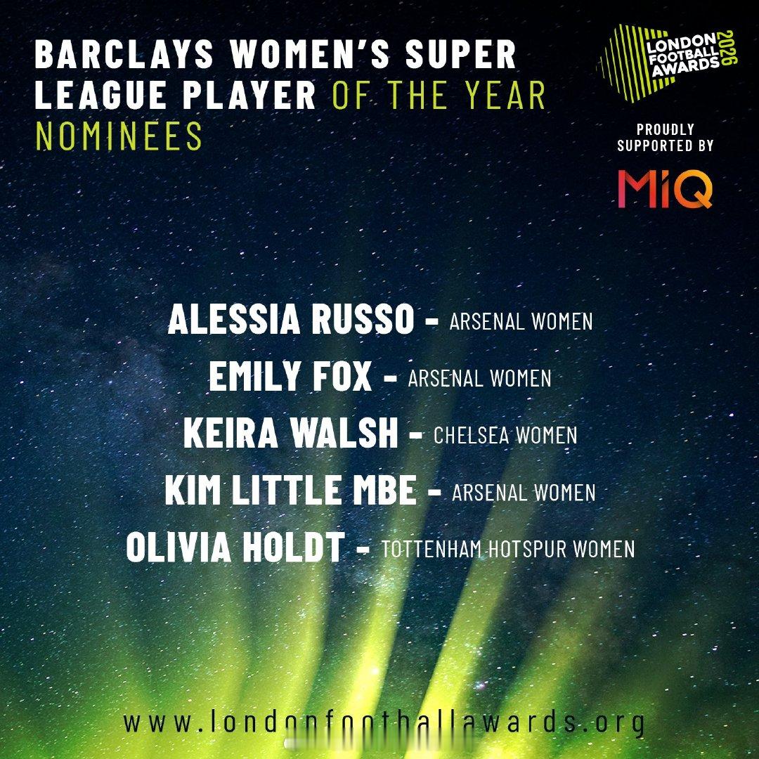年度最佳门将提名名单:莱诺(富勒姆)、凯莱赫(布伦特福德)、拉亚(阿森纳)、格兰特·史密斯(布罗姆利)、莱兹·克普(热刺女足)