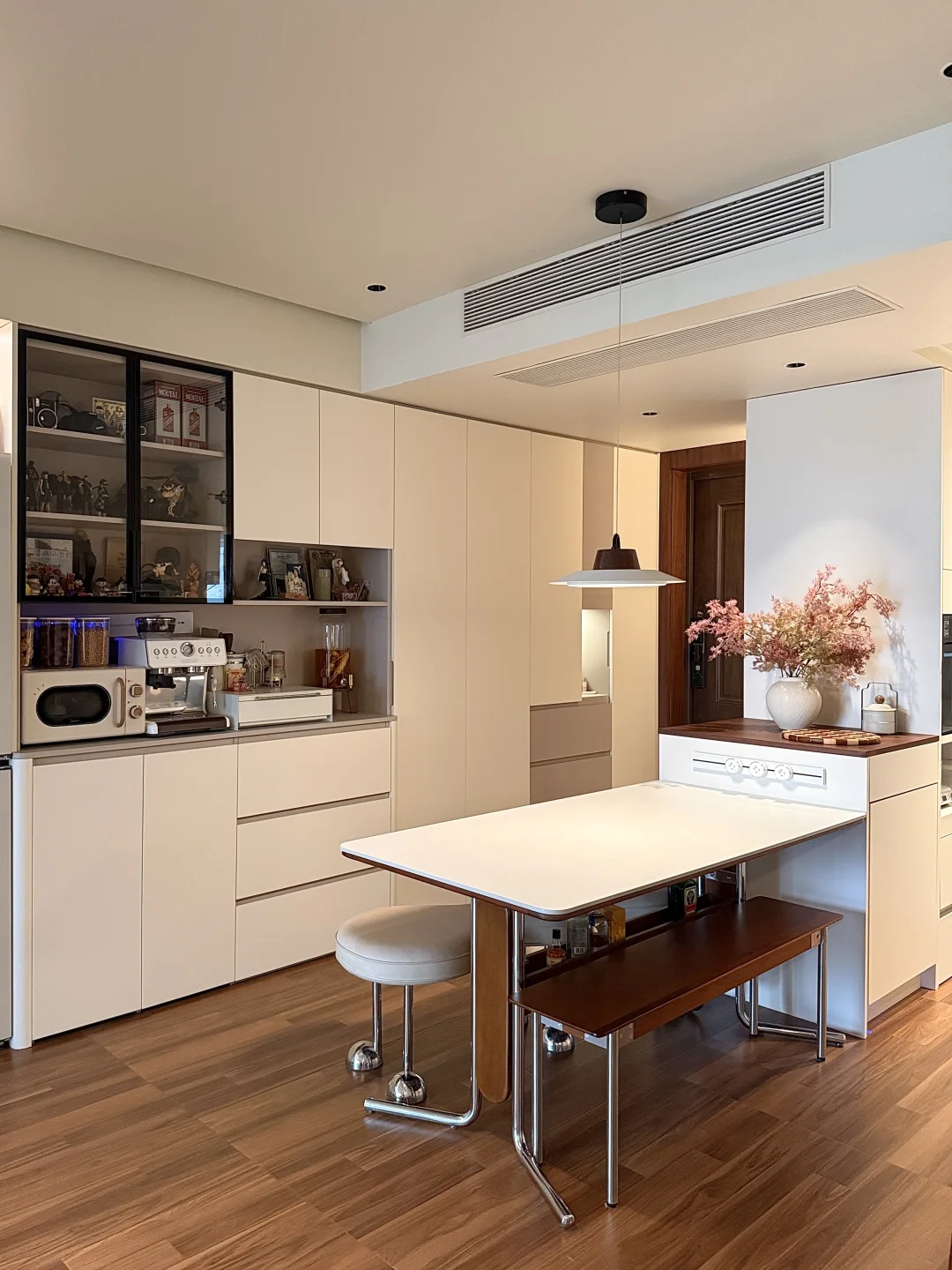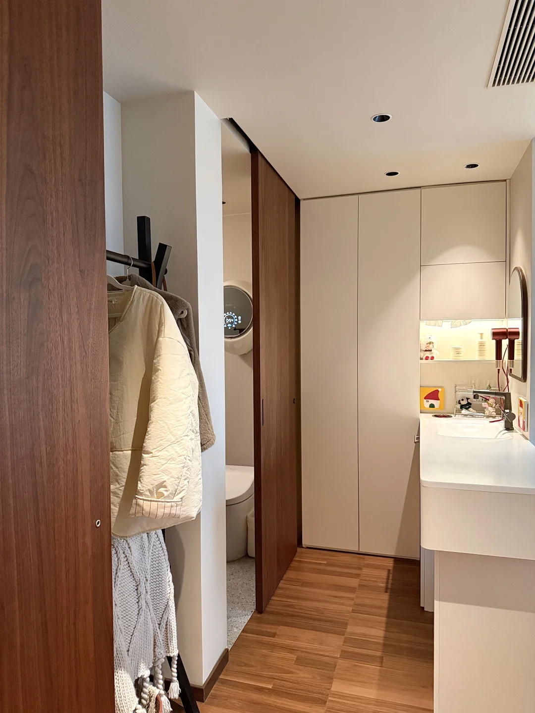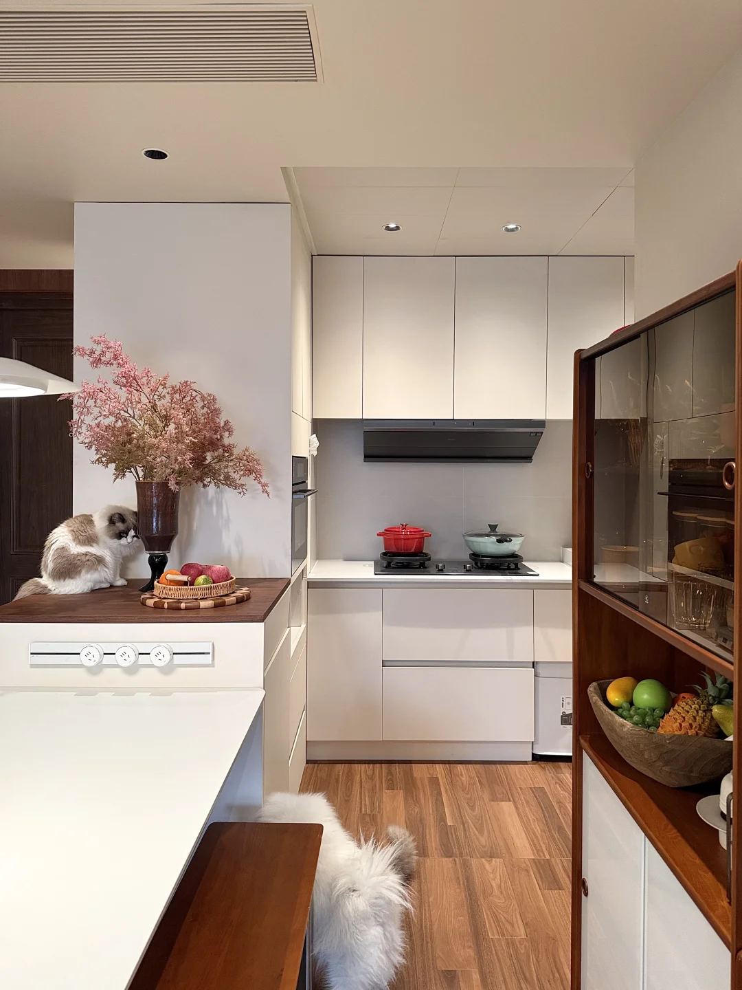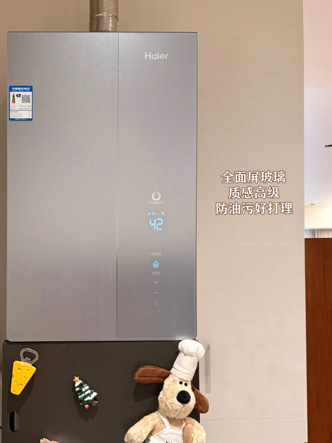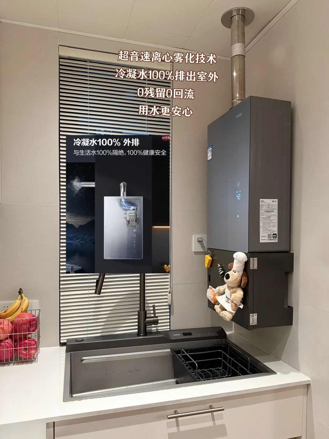 这里是小粥的家✨ 🏠关于我家: 建筑面积96平,套内80平,精装交付 被我改造成:客餐厨一体+两卧一书房 还巧妙规划了家政间和双卫生间 直接get显大 实用并存的温馨小家 👇改造心得 1️⃣打通厨房阳台与次卧隔断,让客、餐、书房连为一体 2️⃣全屋通铺木纹砖,进门视野开阔无遮挡 3️⃣改变次卫门方向,实现干湿分离 4️⃣串联淋浴和洗衣 5️⃣主卧采用开放式洗漱区,视觉显大,床尾定制整排衣柜收纳力满分 家里的每个角落我都花足了心思,最后落地下来最让我满意的还是开放式厨房的设计,我家厨房只有不到4平米,交付时封闭的空间,两个人在里面都转不开,改造后两个人在里面操作也是游刃有余 开放式的小厨房对家电比较局限,要考虑大小尺寸,也要考虑美观,当然在功能上也不能落下,所以选择燃气热水器我也是对比了很多 最终是选了海尔k70热水器,它是无冷凝管的设计,不像普通一级能效燃气热水器得额外打孔布管,我家厨房空间小都不好安装。 这种无冷凝管设计,安装在我家4平米不到的厨房,也是很协调很好看的。 它是通过超音速离心科技外排冷凝水的,能将冷凝水打散成水雾,并随烟气100%排出室外,一点不会混入生活用水,全家用水更安心 关键这款热水器是超一级能效的🌟,搭载节能立方换热器热效率高达107.2%,远高于普通热水器 长期使用更省气,官方说用8年能省好五千五呢 加上一级能效产品有国家补贴 还能再省一笔~ 省下的钱还能再添置个其他家电👍 它采用AI双循环恒温技术,我家两个卫生间同时用水,水温依然稳定如常 开关水不再有骤冷骤热的困扰,波动温差可低至0.5℃,堪称“控温高手” 一点一滴,都是心思;一物一件,都盛满对生活的热爱 这个家,不仅好看、好住,更装下了我所有的安心与憧憬✨
