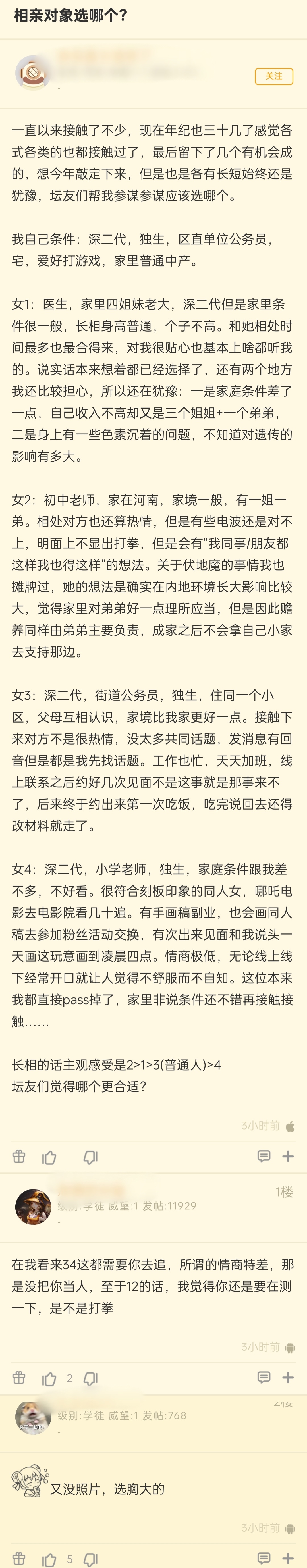 “相亲了才发现大部分是女的不同意,男的基本不挑。”怎么可能?一般都是男的看不上女