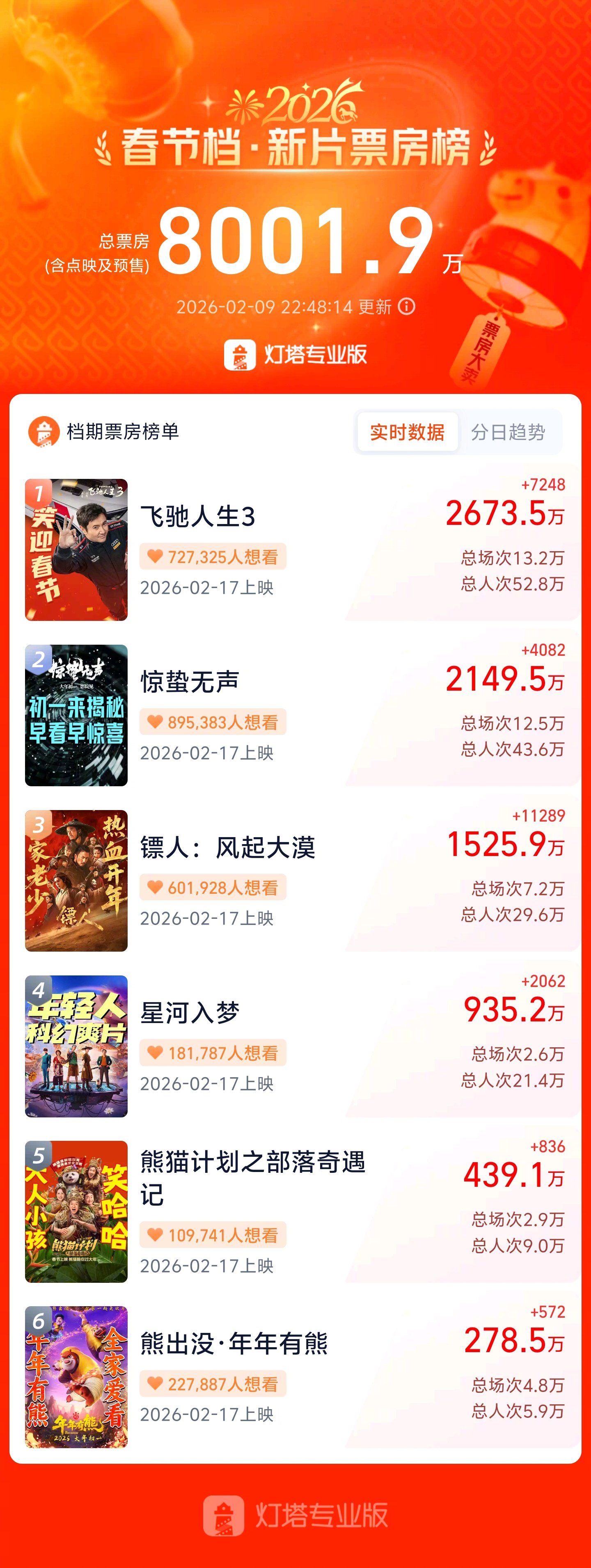 2026春节档新片预售票房破8000万 据灯塔专业版,截至今日22时48分,2026春节档新片预售总票房已突破8000万。春节档马上有戏