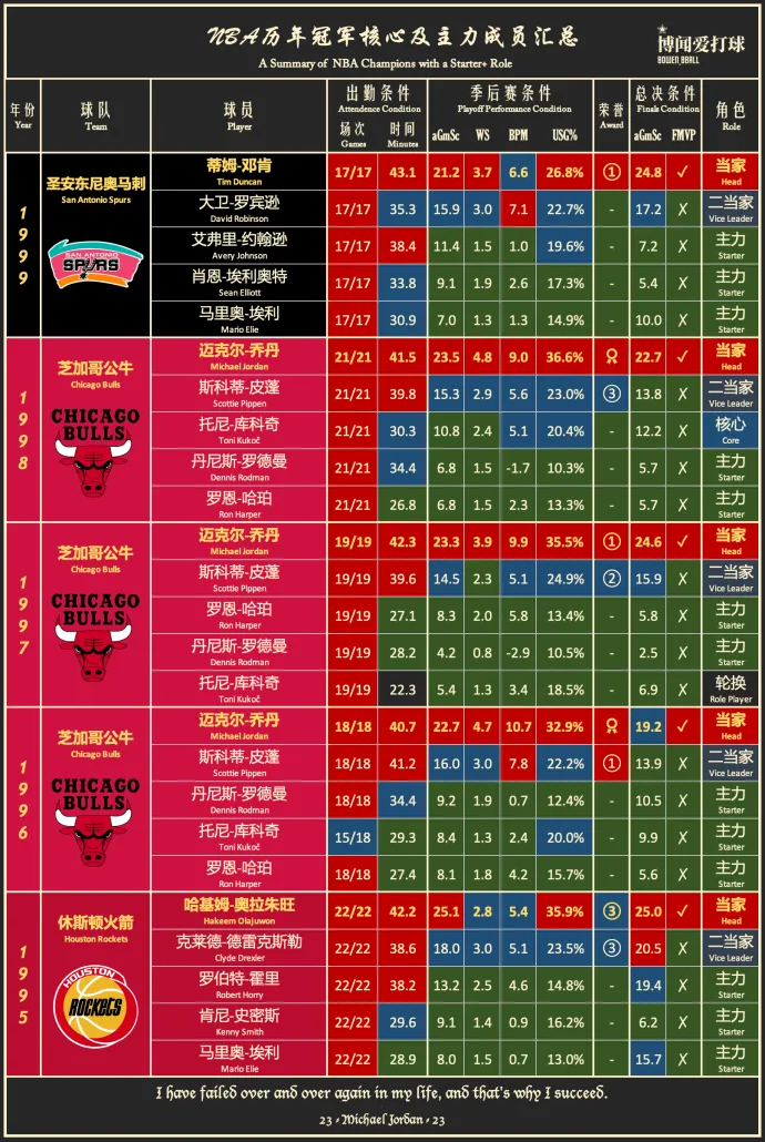 《1990-2023历年冠军核心/拼图情况图》