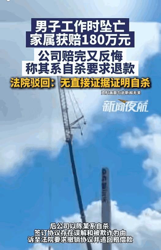 吃相太难看!陕西男子工亡公司赔180万,发现网贷竟起诉要回,法院两审判决大快人心! 员工在工作岗位坠亡,公司自愿签协议赔180万,转头发现员工有网贷和疑似遗书,就一口咬定是自杀,逼着家属退钱,这操作属实让人膈应。 口口声声说自己是冤大头,可拿出来的全是间接证据,既没法实锤自杀,又否定不了自愿签的合法协议,法院驳回诉求简直是理所应当。 180万对公司或许只是一笔小钱,可对没了顶梁柱的家庭,这是活下去的底气。 签了字的协议岂能说悔就悔,拿不出实锤证据就想推翻一切,说到底还是不想担责。 法律从不会纵容这种出尔反尔,更不会让失去亲人的家属再受二次伤害。你觉得公司这波操作,是不是既失理又失品?
