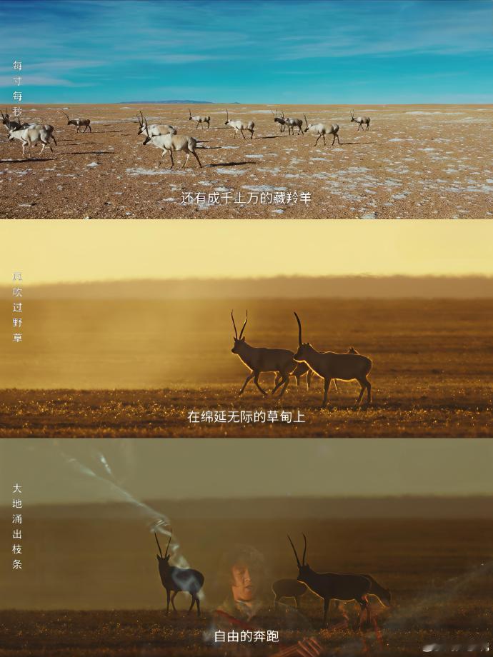至此生命树已成艺术谁还没被生命树的画面美学戳中!金色的阳光洒在草原上,藏羚羊的身影在光影里穿梭,这种极致的视觉享受,真的让人感受到了艺术的力量!