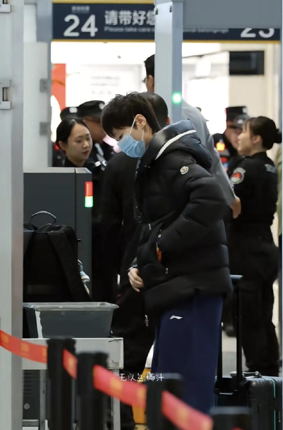 今日在海口机场坐安检的王曼昱。摘下来戴着的口罩,进行面部识别。瞬间可以看到一张清秀小脸! 安检时把口袋里的手机掏出来,放在安检框里也是慢慢的,脱掉羽绒服也是慢慢的! 平时比赛场打球雷厉风行,但是做事情非常仔细,慢条斯理的!