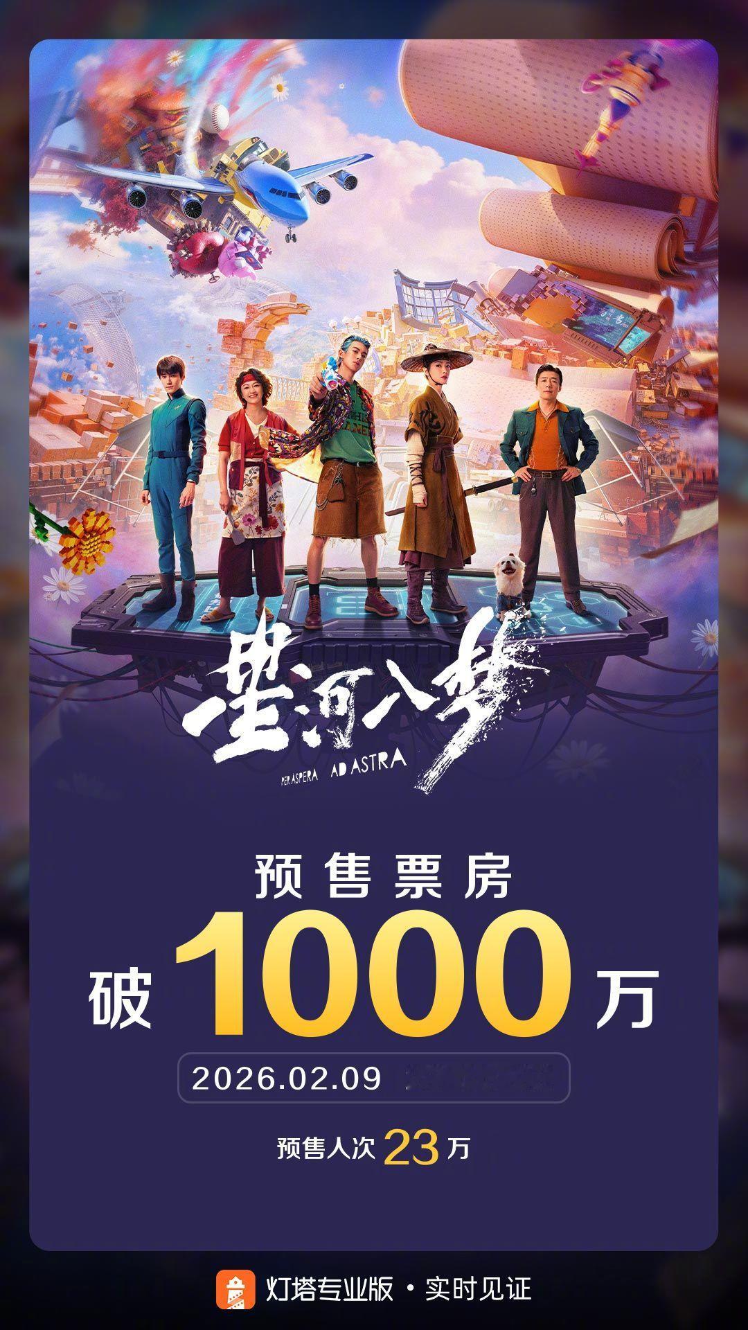 星河入梦预售票房破1000万 据灯塔专业版实时数据,截至2月9日23时55分,影片《星河入梦》预售总票房突破1000万。春节档马上有戏