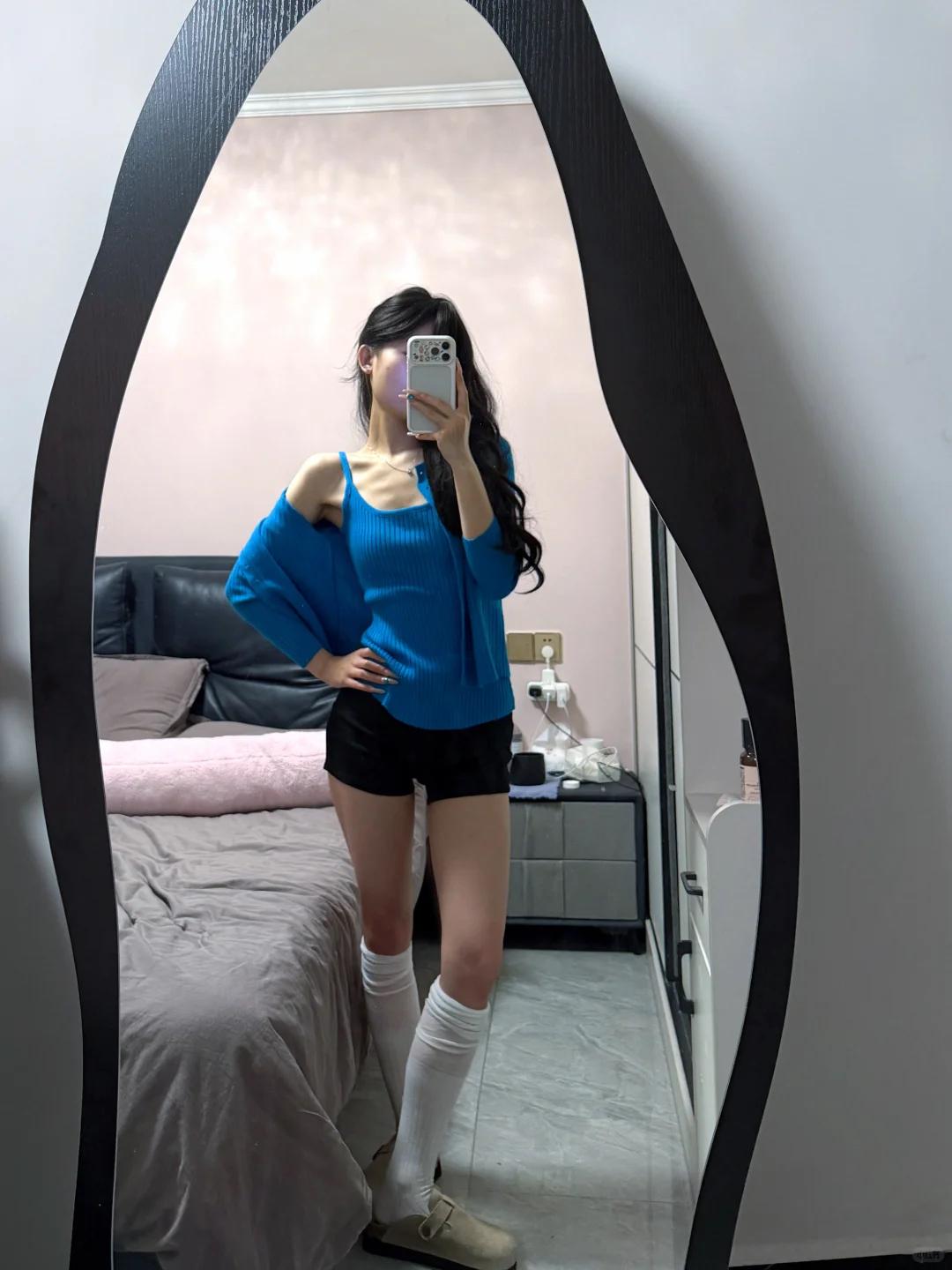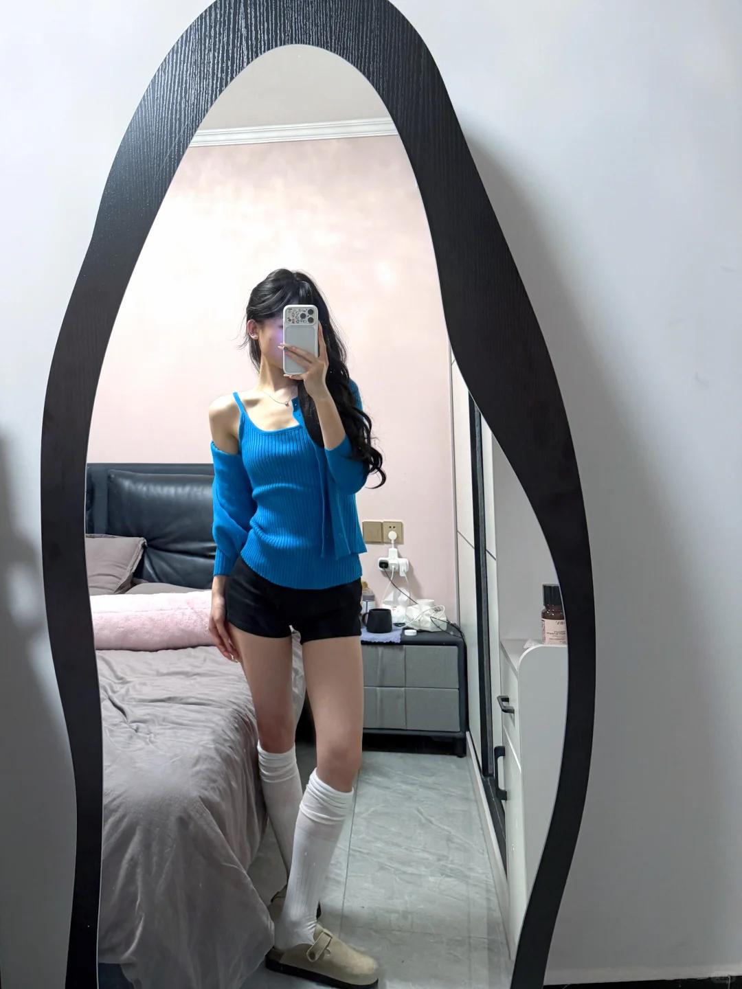 浅粉荷叶边上衣搭配黑色鱼尾裙,裸色红底高跟鞋,轻熟又不失灵动,氛围感直接拉满。