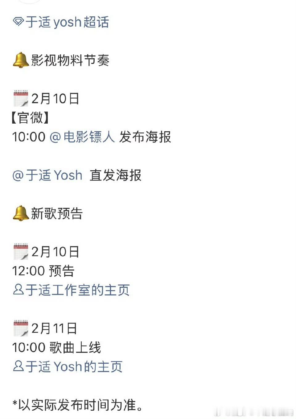 于适还是太全面了,明天不仅有镖人的物料,还有新歌预热,就是这样影歌跨界全能艺人