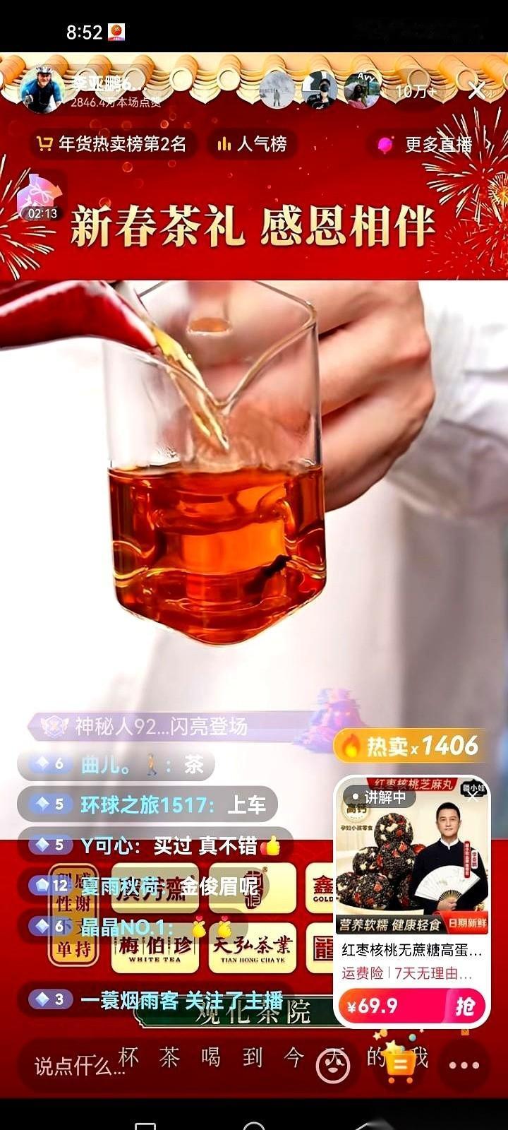 李亚鹏的直播间,一抬头,榜二,前面就杵着一个“与辉同行”。 158块的老枞水仙,库存数字刚跳出来,没了。279的古树红茶,购买链接刚挂上去,灰了。助理在旁边话还没说完,屏幕上已经清空。 最狠的是那把399的紫砂壶,好多人购物车里刚加进去,手还悬在付款按钮上,屏幕中间就飘过一行小字:本场已售罄。连个反应时间都不给。 弹幕刷得看不清字,全是问号和“手慢了”三个字。 上一次他卖了一个多亿,这次看这架势,是奔着破纪录去的。 你说,到底是他的茶叶真有那么神,还是他这个人,本身就比茶叶更有味道?