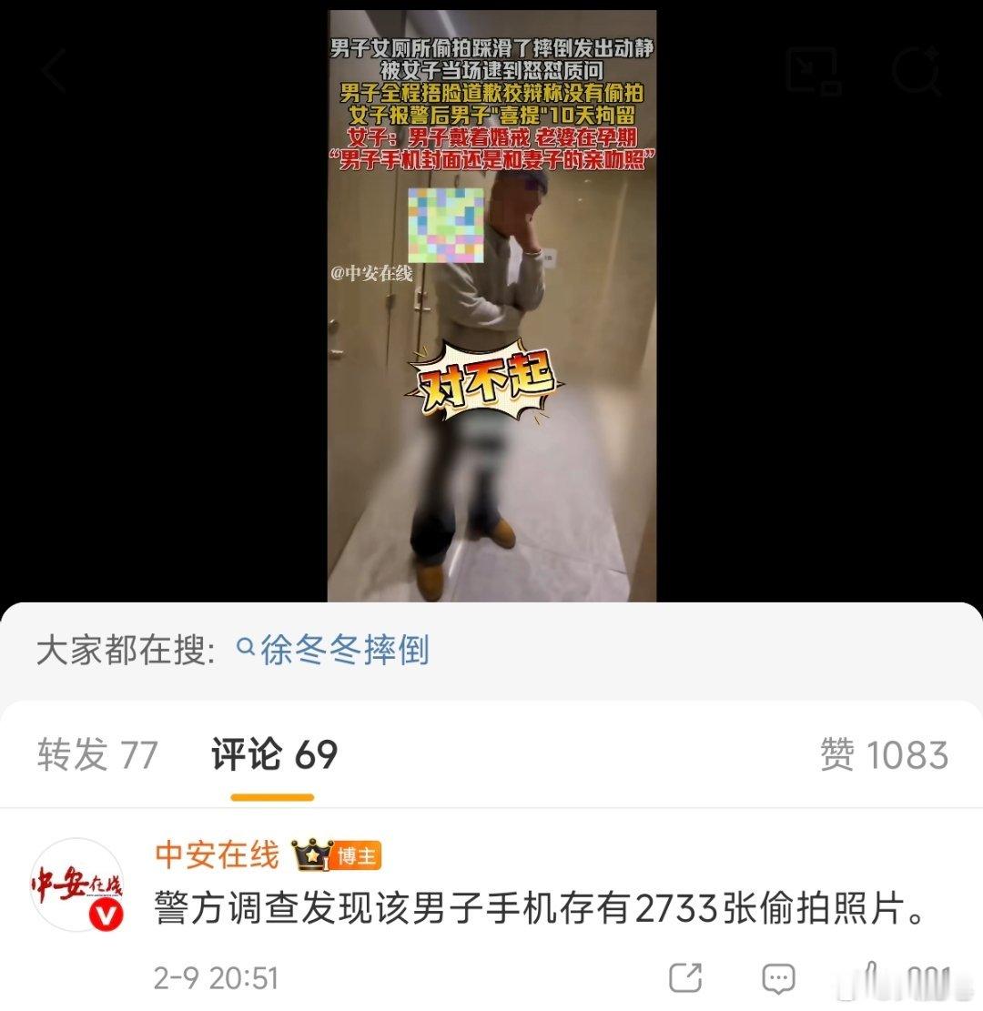 男子在女厕所偷拍摔倒被当场抓获 我真的很愤怒,这群人能获得什么呢?这是一种癖好吗?还是能赚到钱,如果能赚到钱说明这是一个利益体,我觉得可以深挖一下。真的太恶心了,太过分了。