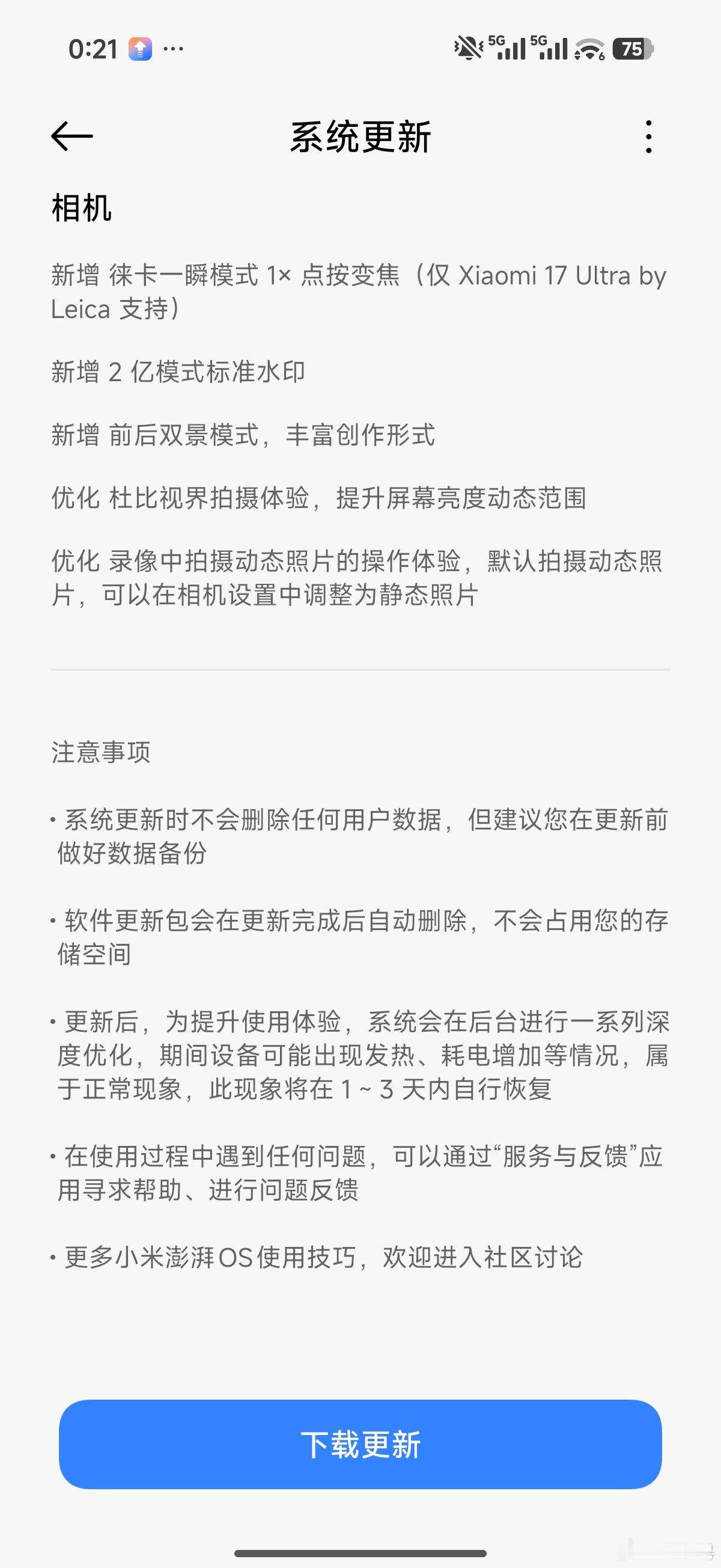 天菩萨,小米17Ultra徕卡版终于更新了。