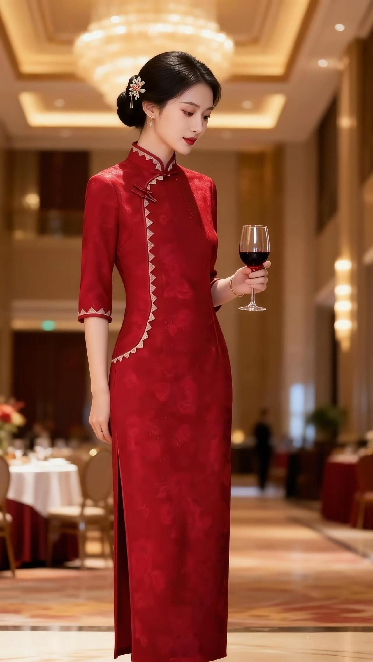 旗袍裁春裹芳华风过窗棂时,她转身的弧度里,墨发轻垂在旗袍立领边,铜色盘扣像