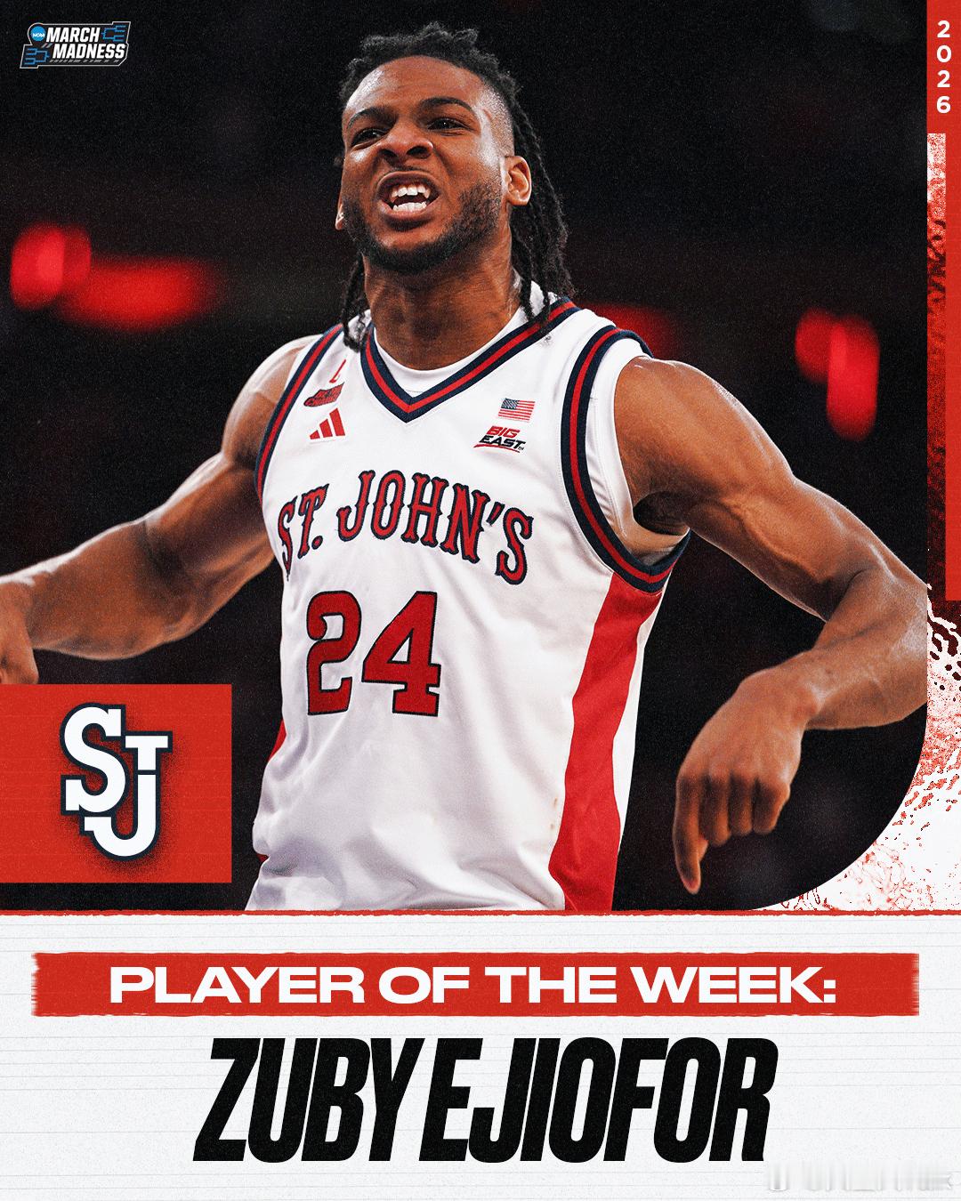 NCAA官网第14周NCAA男篮最佳球队:北卡罗来纳大学,最佳球员:Zuby Ejiofor,最佳新人:Ebuka Okorie。