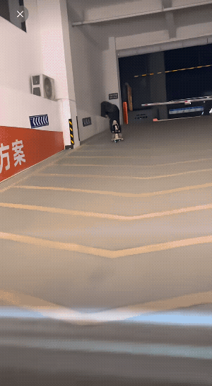 在地下停车场骑扭扭车,下坡速度还真快,隔着屏幕都担心突然窜出来一辆车…… 估计是家长没跟上,小孩子就滑下来的吧!