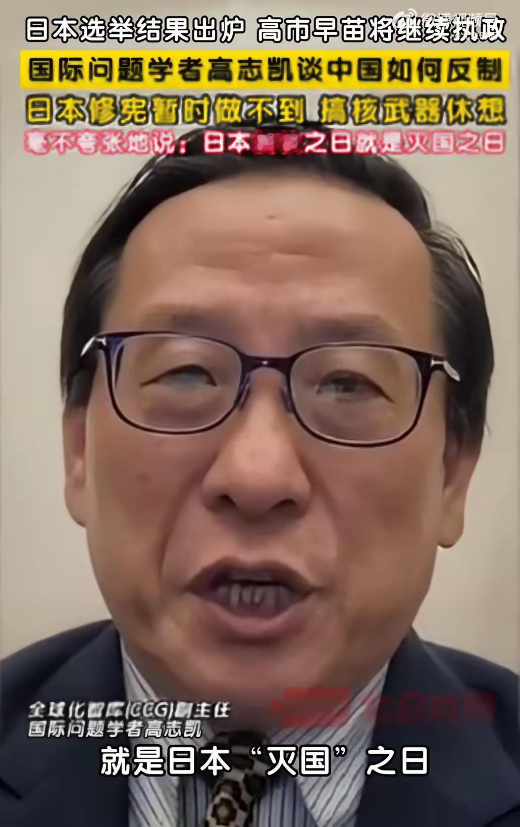 支持高志凯! ​在高市早苗赢得日本众议院选举之后,高志凯在视频中直言,日本拥核之日,就是日本的灭国之日。 高市早苗赢了,赢得还挺多。但这话不是喊给我们听的,是说给日本国内那些右翼听的,给他们打打气。日本老百姓日子不好过,物价在涨,日元在跌。她搞什么“危机大选”,就是想用外面的事情,把大家眼睛从家里这些麻烦上挪开。 她赢了选举,不等于能想干嘛就干嘛。日本前首相石破茂都说了,拿到多数议席,不表示你可以乱来。这话是说给谁听的?就是给她听的。 咱们外交部也把话撂下了:希望日本走和平发展的路,别往军国主义的坑里跳。这话够明白了吧? 再看看她手里攒的那些“家当”,才叫真的吓人。日本偷偷囤了超过47吨的分离钚。这么多钚是干嘛的?日本自己说搞核电站用,可他们现在用的反应堆根本用不上这么多钚。有专家算过,这些钚理论上能造出几千枚核弹头。 这不是藏着野心是什么?嘴上说着“无核”,手里却备齐了材料和全套技术。连他们自己国内都有超过六成的人反对拥核。 她这么干,真能给日本带来安全吗?咱们往现实里看。今年年初,中国加强了对日本的两用物项出口管制。这些东西,比如一些关键的稀土材料,很多高端制造和军工产业都离不开。 日本商界当时就急了,因为他们在这方面对中国依赖很深。有日本的经济机构测算过,如果相关限制持续一年,日本的经济损失可能达到2.6万亿日元。这还不是最要紧的,更关键的是技术和供应链可能会被“卡脖子”。 这才是最现实的问题。高市早苗政府想着扩军、修宪,步子迈得很大。可她靠什么来实现呢?钱从哪来?技术材料从哪来?她搞的减税,连自己人都担心会把财政搞垮。 日本背着一身债,要是为了搞军事把经济搞乱了,那才真是本末倒置。历史早就告诉我们,一条道走到黑,不会有好下场。 高志凯的话,听着刺耳,但那是大实话,是警钟。这钟声,不仅是敲给那些头脑发热的日本政客听,也是让所有关心和平的人,都好好听听。 各位读者你们怎么看?欢迎在评论区讨论。