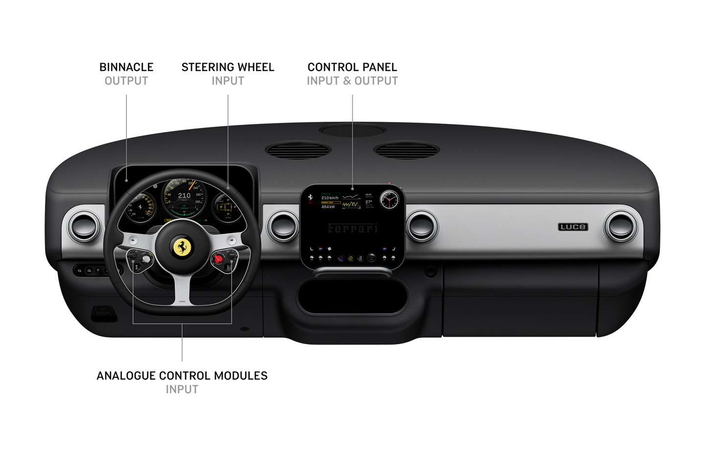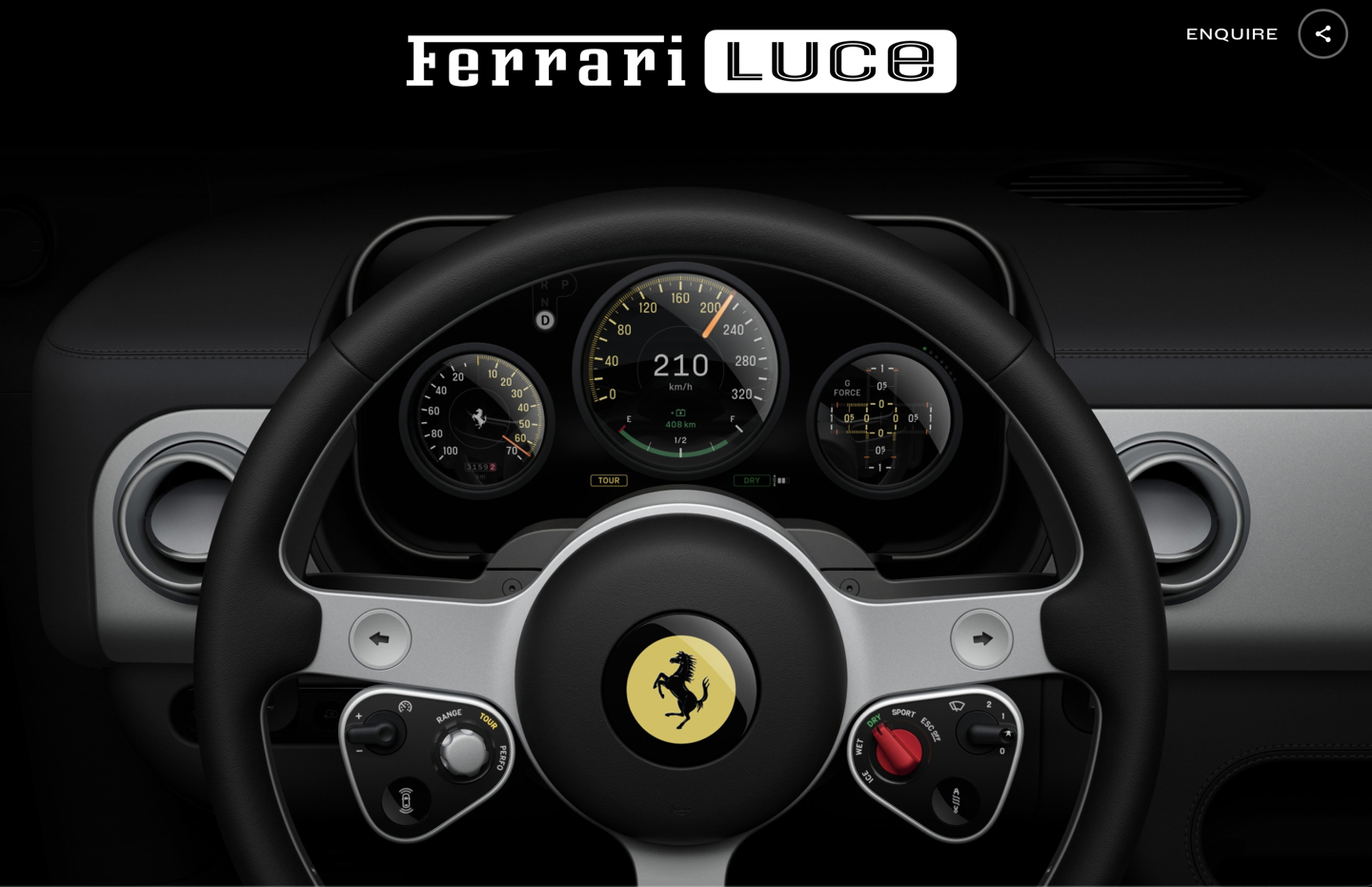 【法拉利首款电动跑车定名 Luce:行业首发 E-Ink 墨水屏钥匙,“iPhone 之父”乔纳森 · 伊夫操刀】法拉利首款电动跑车Luce正式公布,由前苹果首席设计官乔纳森·伊夫及其团队操刀。内饰设计简洁统一,行业首发彩色E-Ink钥匙,插入中控台后屏幕颜色会变化。