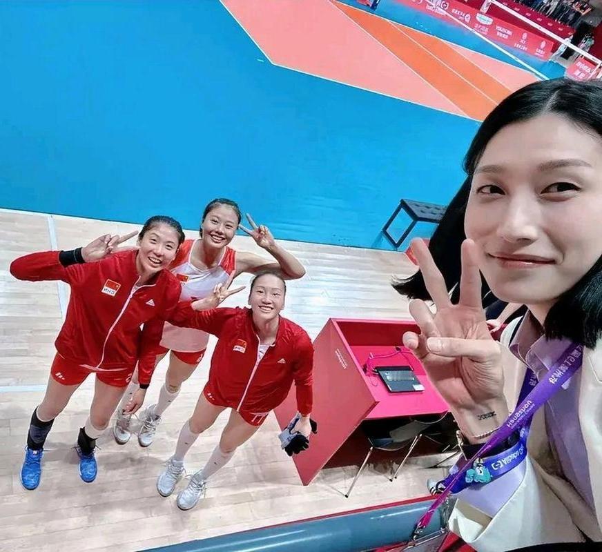 与''排球女帝''金软景比耶合照的三位女排姑娘,我只认出了笑容如璐、气质清甜的龚翔宇,其右侧那位玉指如葱穿着黑袜的是高意吗?可另一位笑容可掬的姑娘是谁?
