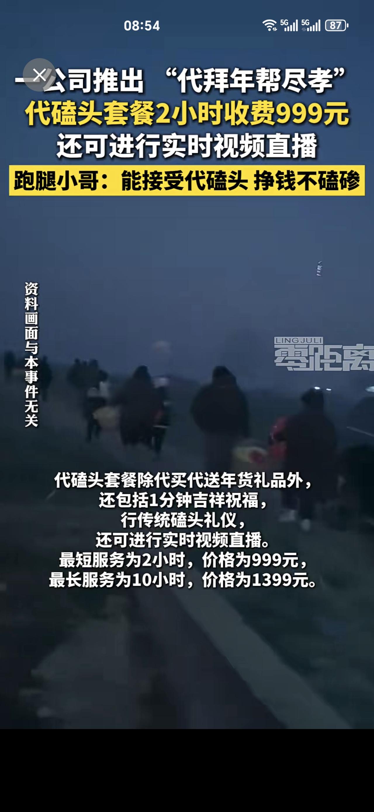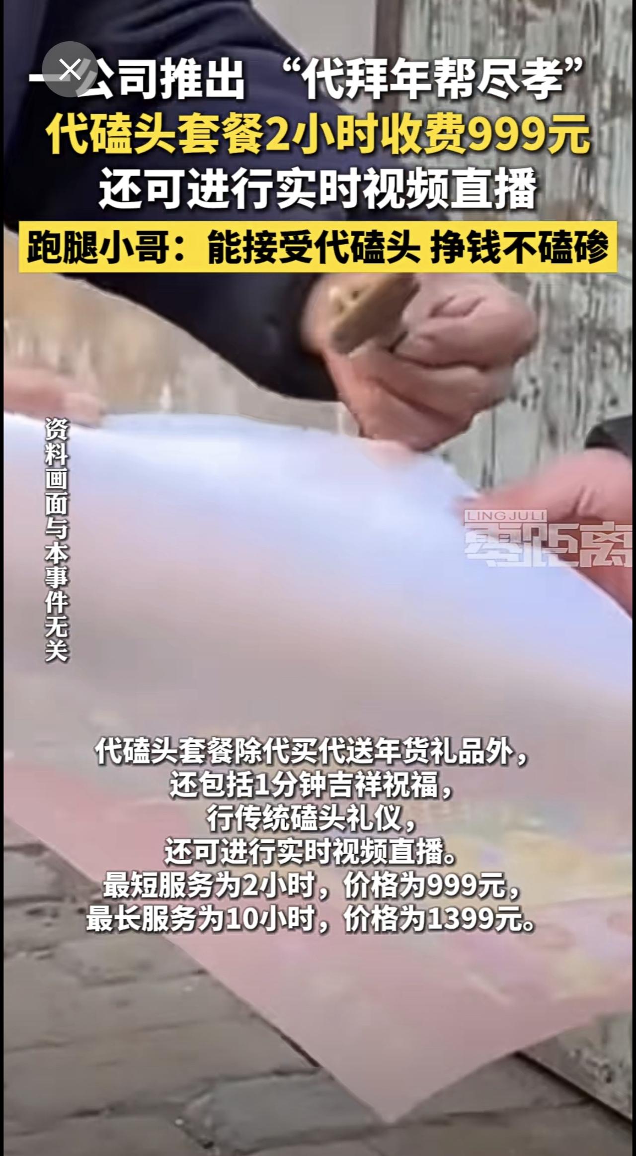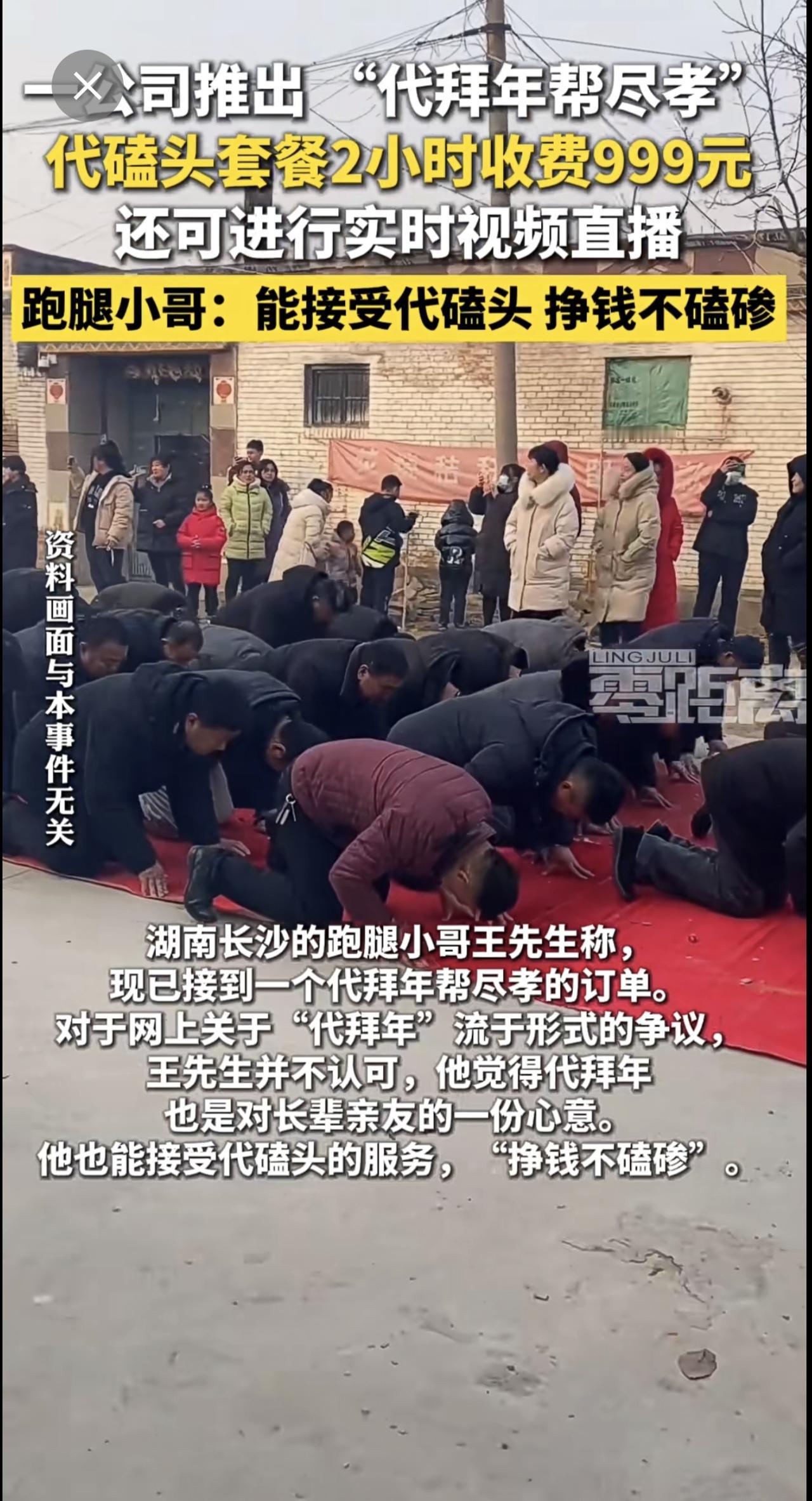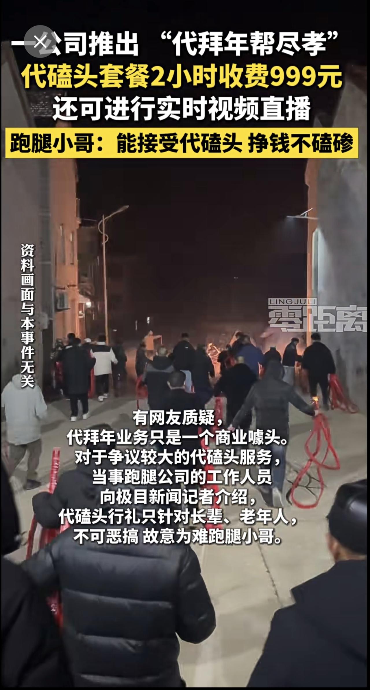 一公司推出“代拜年帮尽孝”服务,跑腿小哥:能接受代磕头,挣钱不磕碜