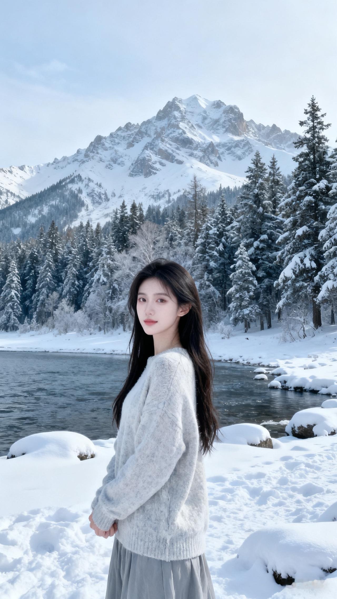 冬日仙境,雪景如画,少女漫步在雪地中,宛如童话世界。