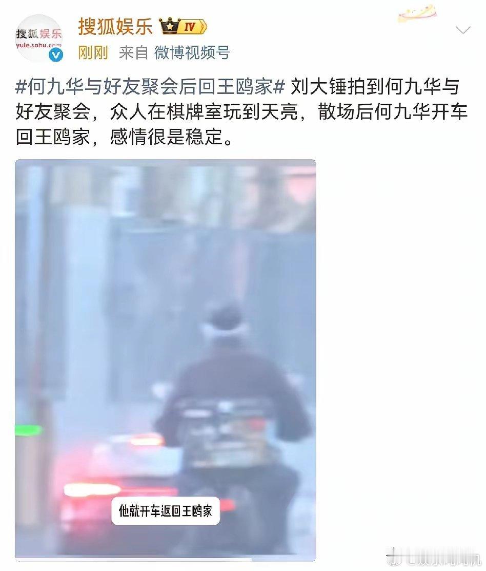 何九华和王鸥,冲上热搜!2月9日,八卦媒体拍到,何九华在棋牌室玩到天亮,接下来何九华的举动让狗仔都懵了,谁能想到散场后,他直接开车回了王鸥家。这波同回住所的操作,跟之前“感情破裂”的传闻完全对不上,这俩人的情路真的是比电视剧还曲折。从2021年到现在,这俩人的感情藏了太多反转,到底是破镜重圆还是另有隐情,估计只有当事人自己清楚了。