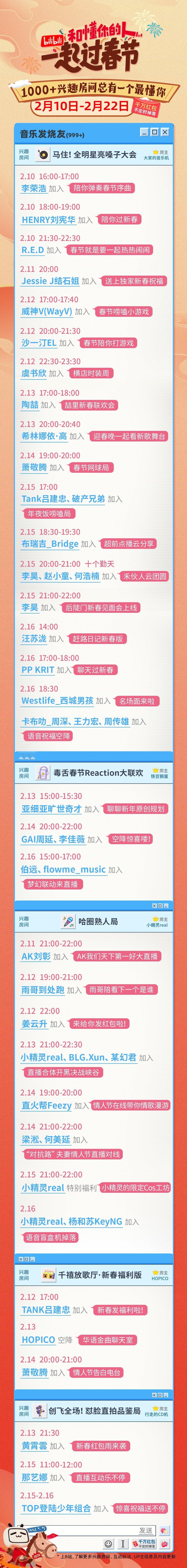 161个明星集体买房半个娱乐圈来开年会好家伙,这是半个娱乐圈都来B站开年会了?今年B站春晚直接放大招,不仅有萧敬腾、汪苏泷、徐明浩、时代少年团、TF_ING、虞书欣、陶喆等超百位明星嘉宾,还是B站首次直播春晚,传统艺能弹幕已就位,这才是属于Z世代的年味吧,红包雨在路上,这才是年轻人的春节打开方式,2.15一起花式过年!B站春节同好唠嗑局春晚大赏