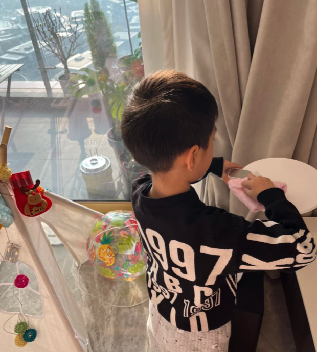 小手擦桌超认真 (。・̀ᴗ-)✧,踮脚够窗超可爱🪟扫走旧年烦恼尘埃🌬️,迎来新年干净欢喜🏮小小劳动超有意义💪,年味陪伴双倍快乐🥰收玩具、叠小衣、理绘本📚,样样都要试一试 (✧∇✧)