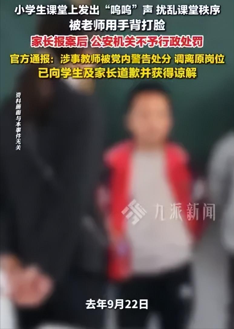 黑龙江虎林,小学生在课堂上,持续发出呜呜呜的声音,老师实在是忍无可忍了,就用手背打了小学生的面部,事后家长报了警,但民警对老师给出不予行政处罚的决定,家长不服,他们起诉老师。 去年11月27日,黑龙江虎林警方的接警台响起了一通并不寻常的电话。报警人并非遭遇了正在发生的暴力,而是为了算一笔66天前的旧账。 控告的对象,是小陈的班主任李老师。这并不是那种发生在昨晚的冲突,而是一场在两个月前就已经“翻篇”的纠纷。 那是一节快要失控的课。教室里,一种持续不断的“呜呜呜”声像锯子一样切割着空气。发出怪声的是小陈,面对老师的多次警告,他似乎并没有停下来的意思。 这种声波干扰对于课堂秩序的破坏力是毁灭性的。几十双眼睛盯着声源,教学进度被迫中断。在这个封闭的高压场域里,李老师的忍耐线崩断了。 他挥出了左手。注意这个细节,是手背,而不是手心。这一记反手击打落在了小陈的左侧面部。手背传来的痛感瞬间让李老师从愤怒中惊醒,他立刻意识到自己踩过了那条红线。 当天的处置堪称教科书式的“危机公关”。李老师当场道歉,态度诚恳。家长在得知伤情并不严重后,也在当天接受了谅解。双方似乎达成了一种默契:孩子调皮在先,老师动手在后但已认错,事情到此为止。 然而,人性的幽暗之处在于,情绪是有潜伏期的。 在那之后的66天里,究竟发生了什么?也许是家长看着孩子脸庞时心理防线的崩塌,也许是周围舆论的某种发酵。 家长内心的天平悄然倾斜,失去了往昔的平衡。这一微妙变化,似在不经意间,却足以在家庭的小世界里,掀起层层涟漪。他们觉得,仅仅一声对不起,无法抵消那一巴掌对孩子造成的“巨大心理影响”。这种反刍式的情绪最终转化为具体的行动:报警,要求公权力介入。 警方的调查结论很冷硬。经过伤情鉴定和取证,李老师的行为虽然构成了殴打,但情节轻微,未达到《治安管理处罚法》中行政处罚的标准。 但这并不意味着李老师毫发无损。教育系统内部的“家法”远比治安处罚来得猛烈。因为触碰了师德底线,他被给予党内警告处分,并被强制调离了原教学岗位。 饭碗砸了,名声毁了,职业生涯遭遇重创。对于一名教师而言,这已经是“极刑”。 但家长并不买账。在他们看来,职场的惩罚是职场的事,法律的惩罚是法律的事。他们不服警方“不予处罚”的决定,提起了行政复议,甚至将博弈升级到了行政诉讼的层面。 这宛如一个错综复杂的死结,环环相扣,难以轻易解开。它横亘眼前,似一道无形的屏障,将诸多可能的出路一一封堵,让人陷入困局。 在舆论场的一端,是“熊孩子”对公共秩序的公然挑衅。那持续的“呜呜”声,实际上是在劫持全班其他同学的受教育权。有愤怒的声音甚至提出,对于这种无法管教的学生,应该强制家长随堂陪读,甚至由家长来承担扰乱秩序的责任。 在另一端,是绝对不允许触碰的体罚红线。无论学生如何挑衅,成年人的那一记耳光,只要落下去,有理也变成了无理。 现在的局面是,老师已经付出了惨痛的职业代价,退出了那个讲台。而家长依然在执着地寻求一个法律层面上的“说法”。 这不仅仅是关于一记耳光的官司,更像是一场关于教育惩戒权、未成年人保护与公权力边界的漫长拉锯。当教鞭被折断,当谅解可以随时被撤回,教室里的那根弦,只会绷得越来越紧。 信息来源:九派新闻