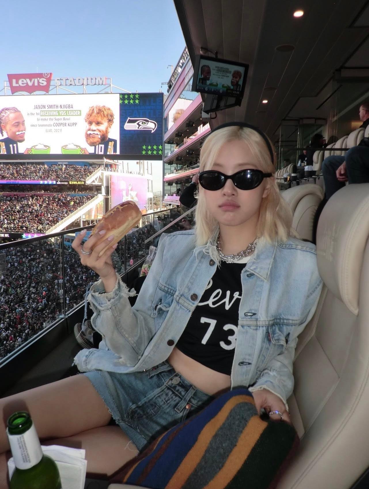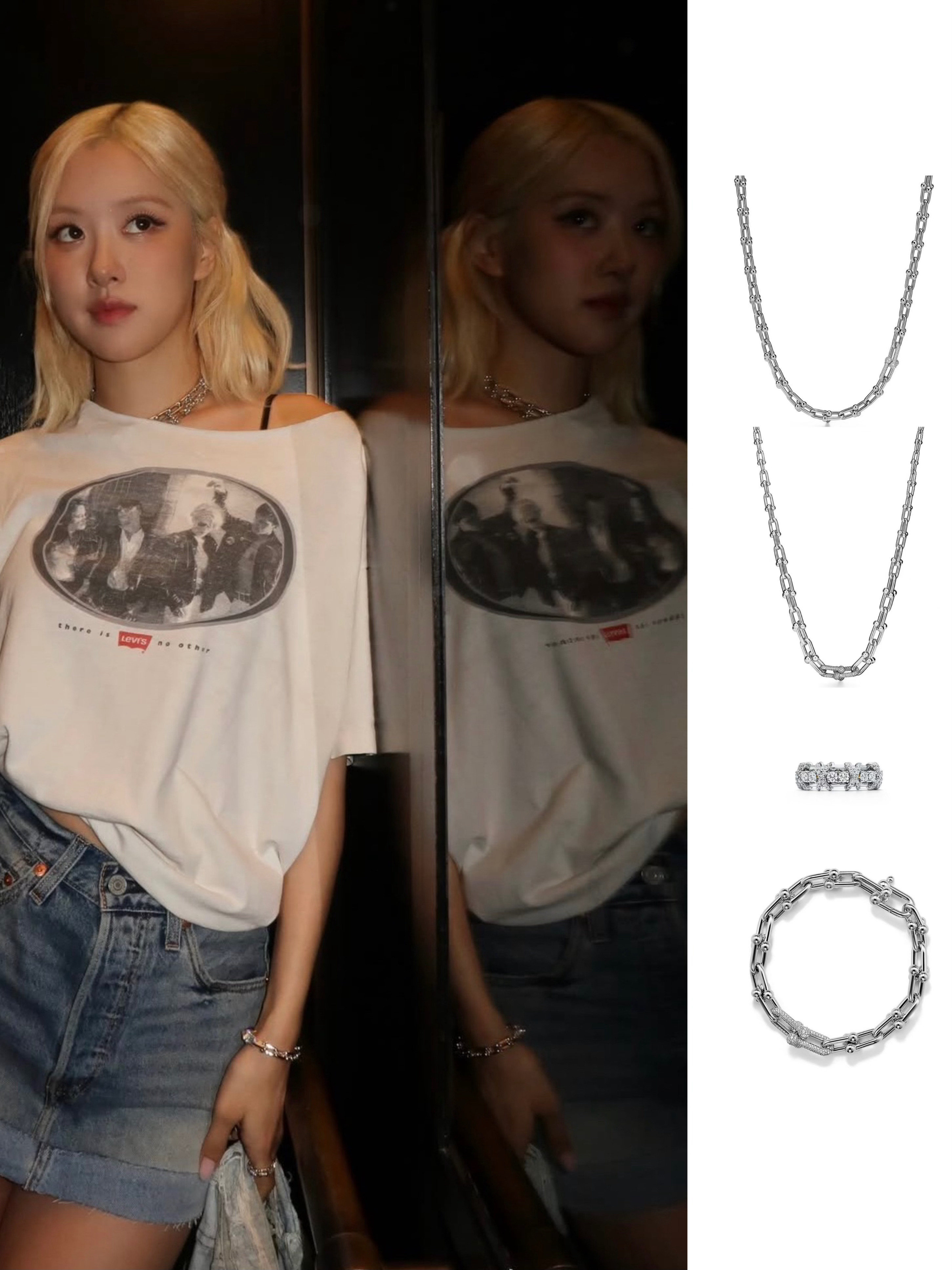 朴彩英(ROSÉ),个性叠戴Tiffany HardWear系列项链,搭配HardWear系列手链及十六石系列戒指,亮相超级碗。