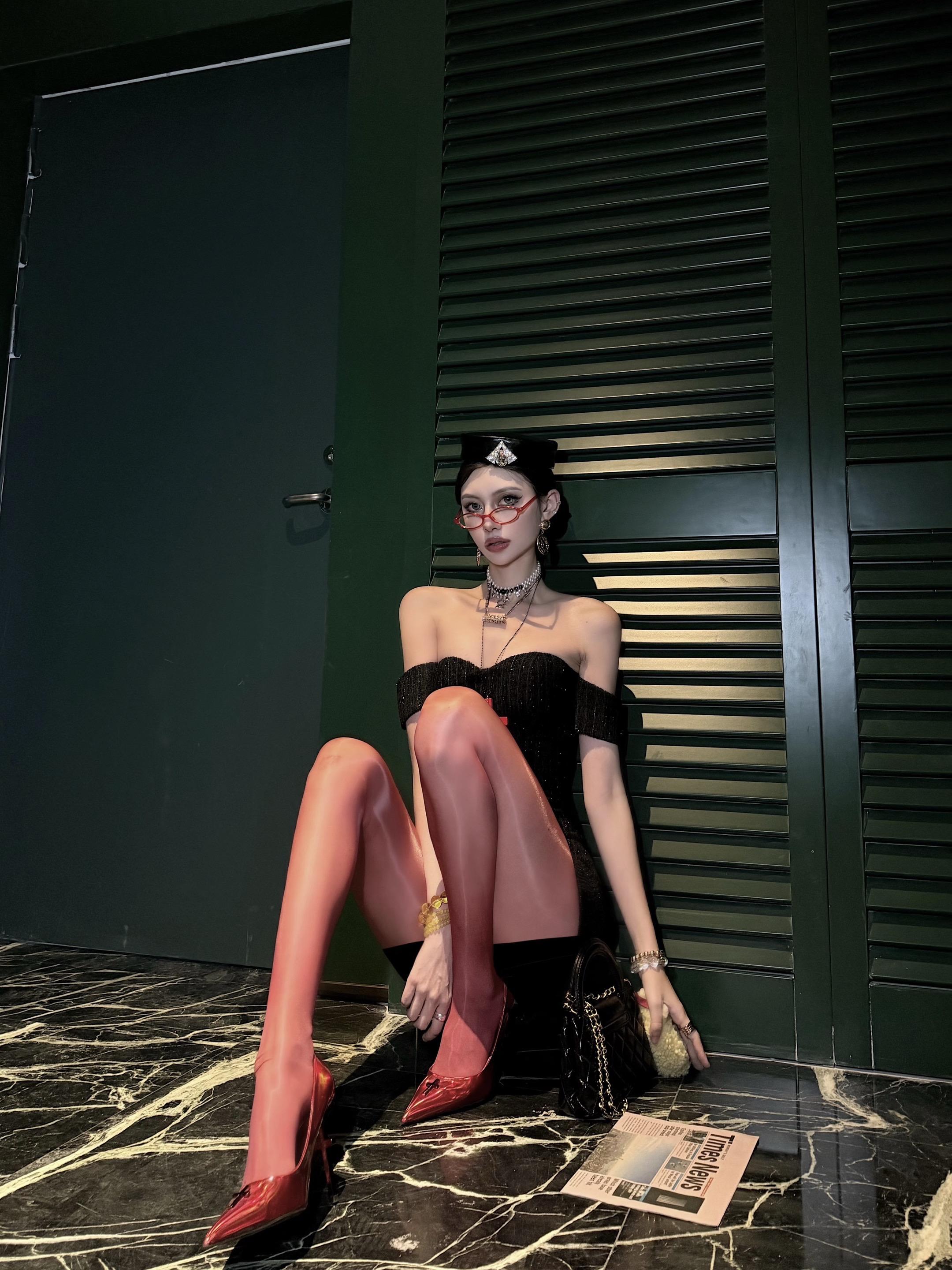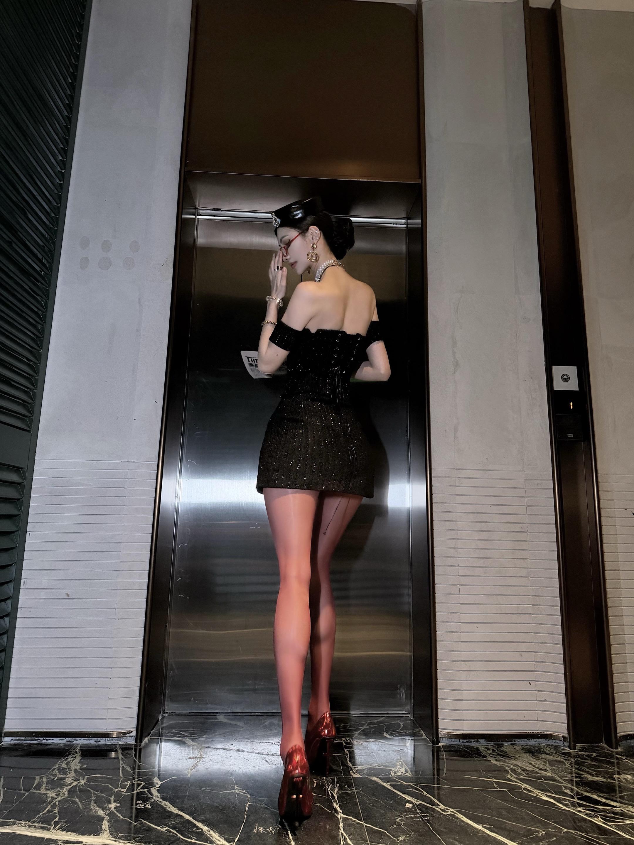 女明星站姿拍照巨显腿长。