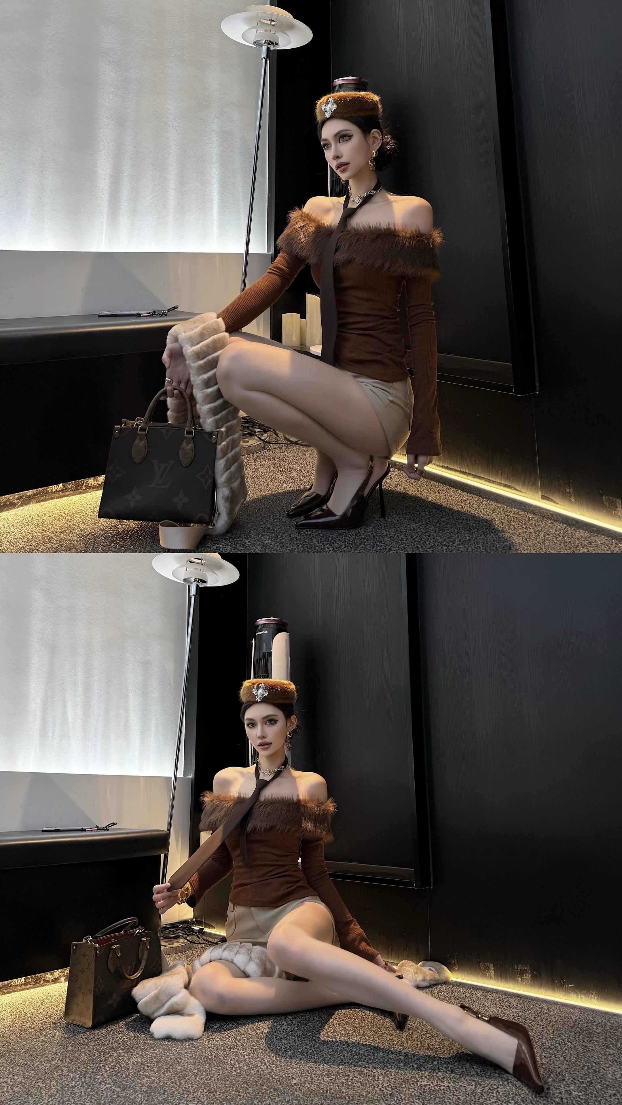 女明星站姿拍照巨显腿长。