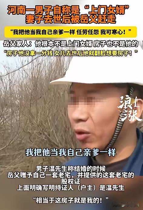 河南平顶山,一42岁男子作为上门女婿,妻子因乳腺癌离世,上午办完葬礼,下午就被岳父和12岁儿子赶出家门,房子门还被焊死。男子崩溃称付出17年,房子该归自己。岳父却否认招过上门女婿,让他拿文件证明。双方各执一词,记者介入调查,最终村委证明房子归属岳父,男子并非上门女婿,真相令人意外。 42岁的男子怎么也接受不了这样的结果。17年的朝夕相处,他把青春和精力全部投入这个家庭,妻子抗癌的六年里,他全程陪护、端水喂药、跑遍医院,街坊邻居都看在眼里。他以为自己早已是这个家名正言顺的一员,可妻子离世的当天下午,所有温情瞬间崩塌。房门被焊死,个人物品被拦在屋内,连最基本的体面都没留住。他站在门外崩溃大哭,反复强调自己17年的付出,觉得房子理应归自己所有,这是他对家庭贡献的最直接认可。 岳父这边的态度异常坚决,全程没有丝毫缓和余地。老人明确表示,家里从来没有招过上门女婿,男子只是与女儿共同生活,建房时没有出过一分钱,房屋的宅基地、建设资金全部由自己承担,产权与男子无关。老人要求男子拿出书面协议、婚姻登记证明或者赠与凭证,用合法文件证实自己的主张,空口陈述不能作为产权归属的依据。两边的说法完全对立,一边讲感情讲付出,一边讲产权讲证据,围观群众也分成两派,有人同情男子多年不易,有人支持老人按规矩办事。 记者陪同双方找到村委会,调取房屋档案与户籍登记资料,真相逐渐清晰。村委会出具书面证明,涉案房屋的宅基地使用权、建设审批手续均登记在岳父名下,属于老人的个人财产。村内备案信息中,没有男子入赘的登记记录,双方也没有合法有效的婚姻登记手续,男子提供的股权证不能作为房屋产权凭证。村委工作人员证实,男子确实在该房屋长期居住,但居住事实不能改变产权归属,法律层面上,男子不具备这套房屋的所有权。 这场纠纷撕开了现实与法律之间的差距。男子口中的上门女婿,只是民间习俗层面的认知,没有经过法定登记,也没有书面协议约定财产归属。我国民法典明确规定,房屋产权以不动产登记为准,非产权人不能仅凭长期共同生活或日常付出主张所有权。男子17年的付出真实存在,情感上值得理解,可法律只认可书面证据与登记信息,情感付出不能直接转化为产权份额。 12岁的儿子在这场冲突里处境尴尬,一边是生父,一边是外公,小小年纪被迫面对家庭破碎的局面。男子被赶出家门,意味着孩子短期内无法得到父亲的日常陪伴,原本失去母亲的家庭,又陷入亲情割裂的困境。双方在争执房产时,很少顾及孩子的心理感受,这也是整件事最让人心疼的地方。 现实中很多家庭矛盾,都源于习俗与法律的错位。上门女婿、口头赠与、长期居住等民间习惯,在产权纠纷面前不具备法律效力。提前签订书面协议、完成婚姻登记、明确财产归属,才能从根源避免亲人反目。男子的委屈值得同情,岳父坚守产权也符合法律规定,没有绝对的对错,只有认知差异带来的悲剧。 17年的亲情抵不过一纸证明,这场闹剧提醒所有人,感情不能替代规则,付出需要合法保障。亲人之间更应把权责说清、把手续办全,别等到人走茶凉,用最伤人的方式清算过往。 各位读者你们怎么看?欢迎在评论区讨论。